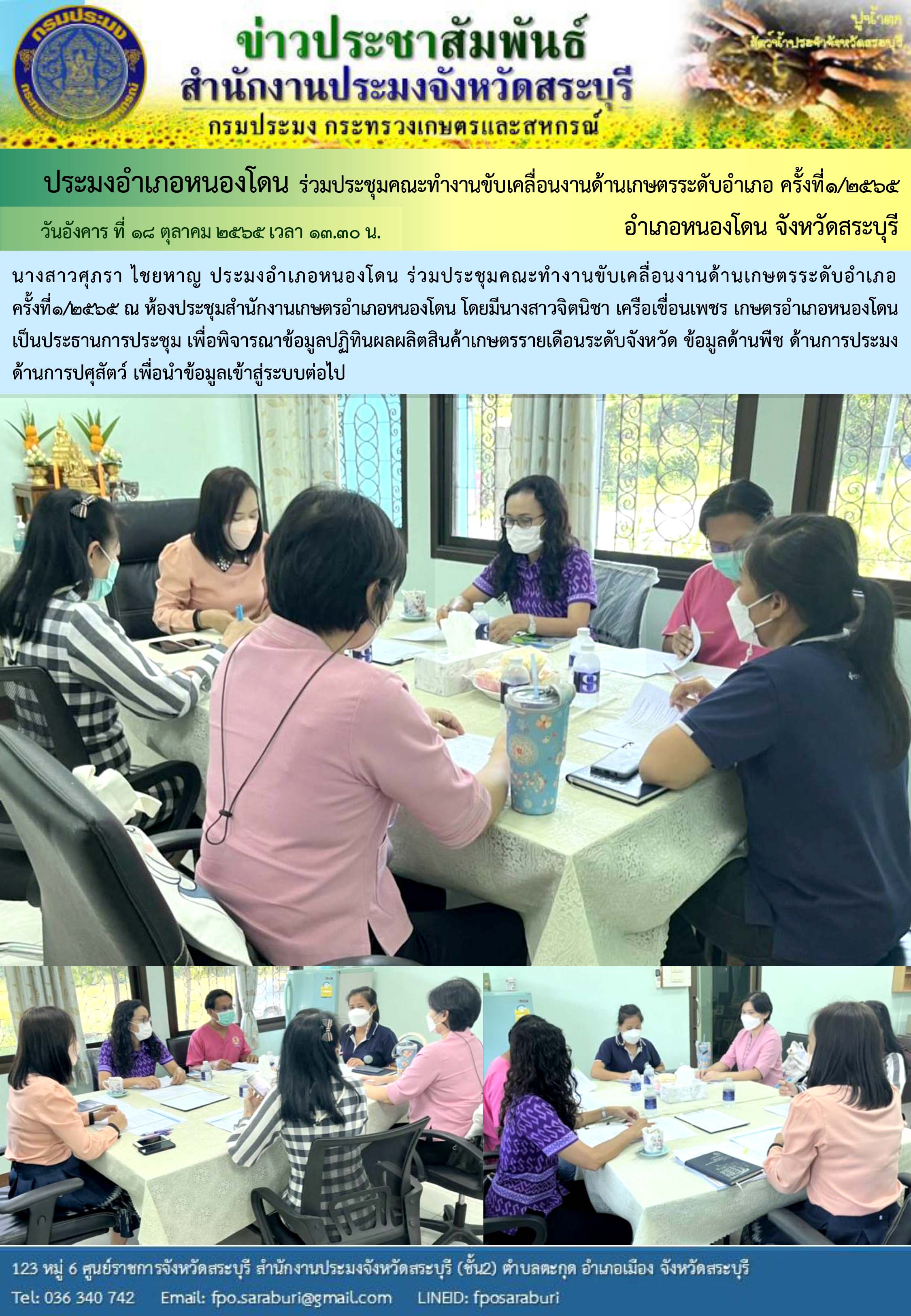 ภารกิจประจำวันที่ 18 ตุลาคม 2565 สำนักงานประมงจังหวัดสระบุรี