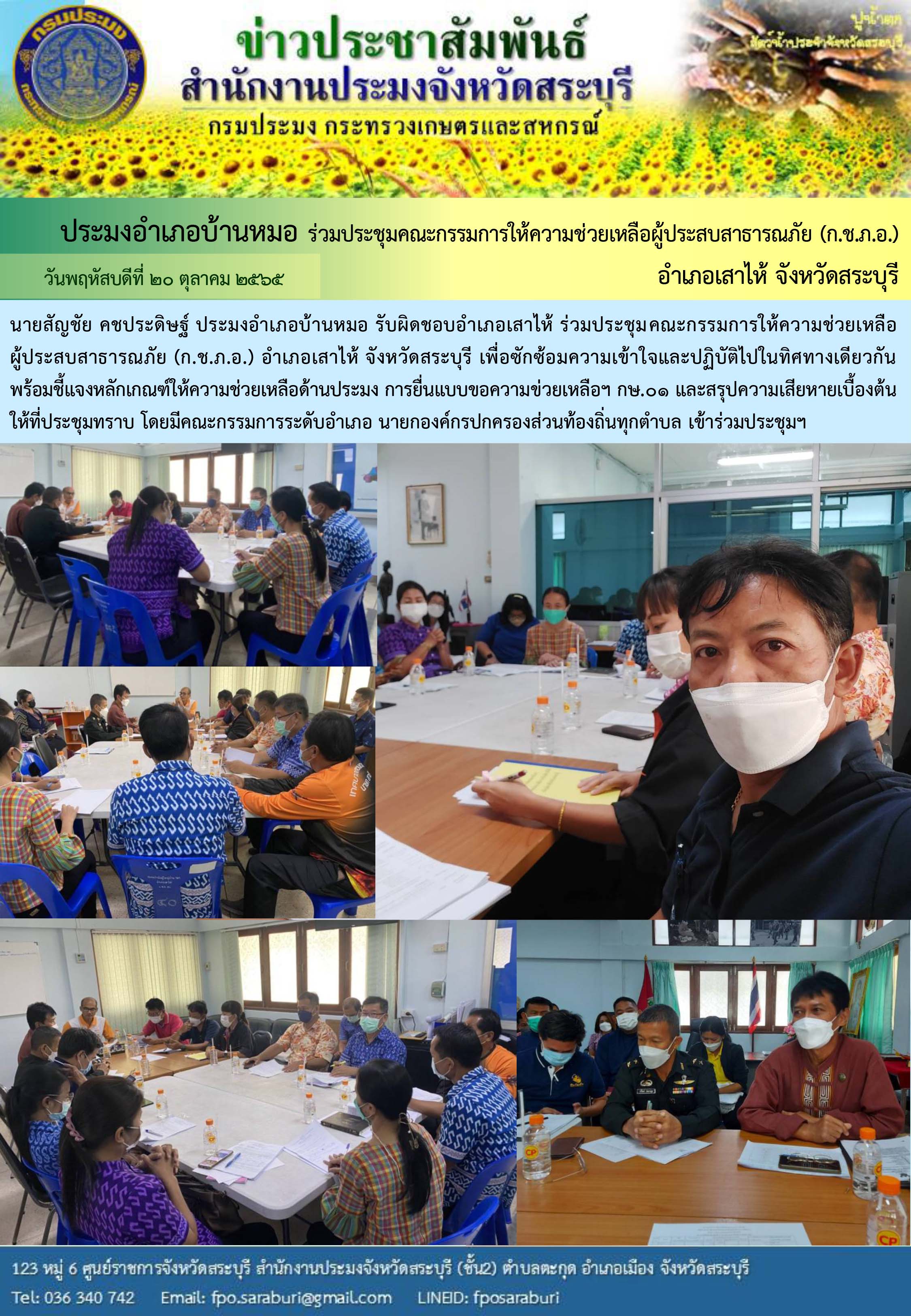 ภารกิจประจำวันที่ 20 ตุลาคม 2565 สำนักงานประมงจังหวัดสระบุรี