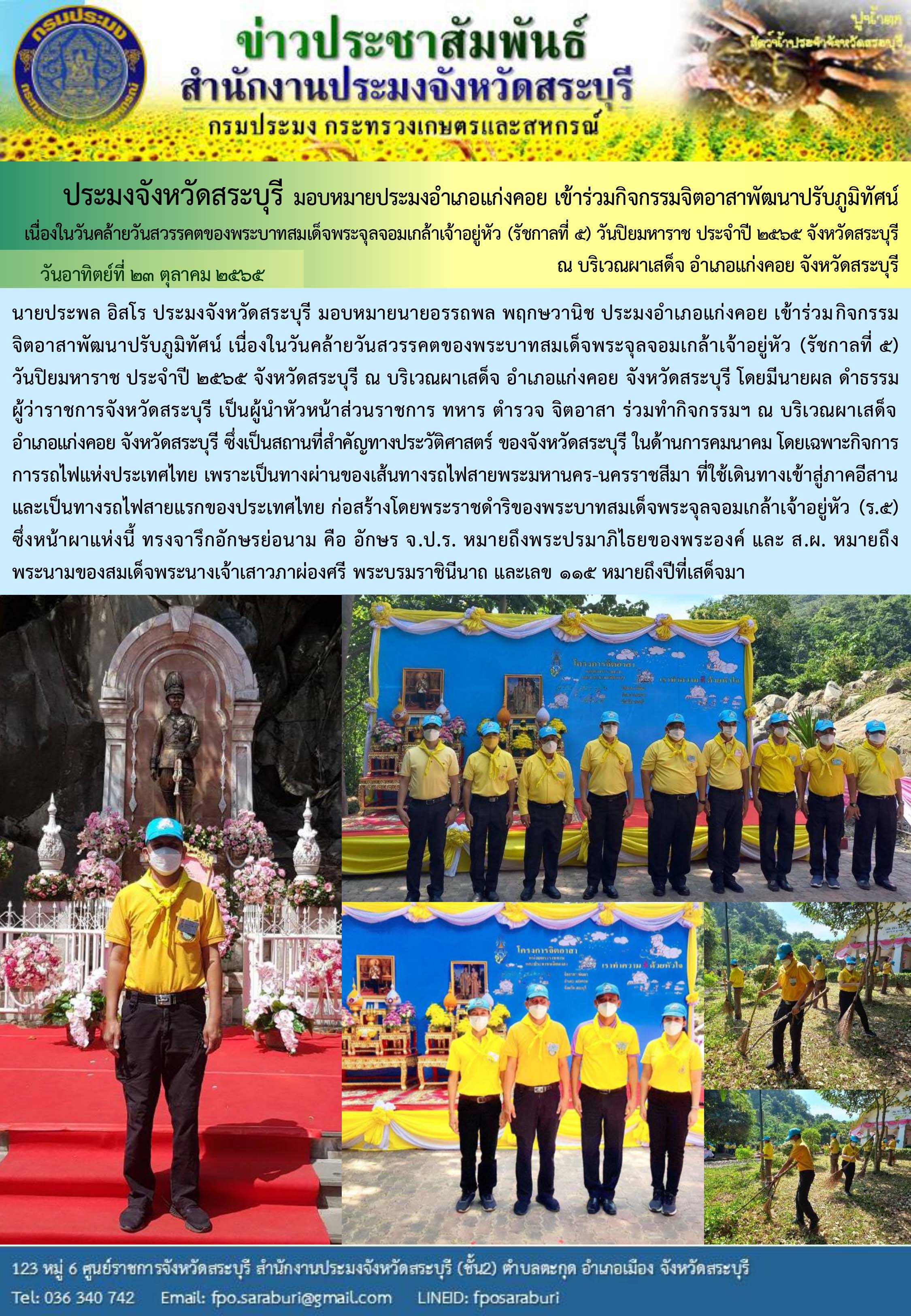 ภารกิจประจำวันที่ 23 ตุลาคม 2565 สำนักงานประมงจังหวัดสระบุรี