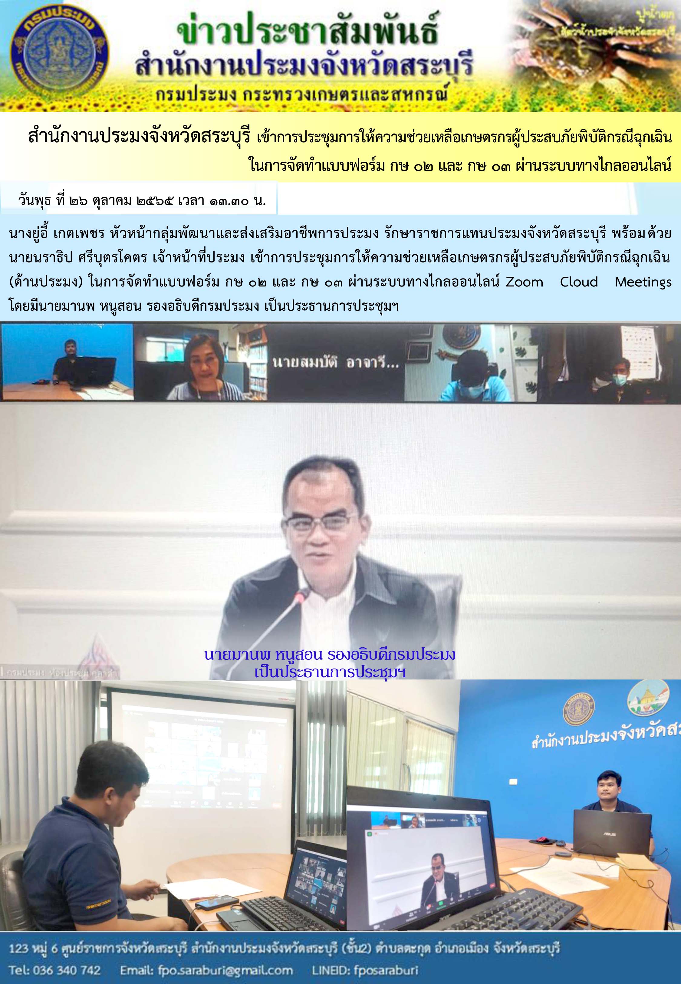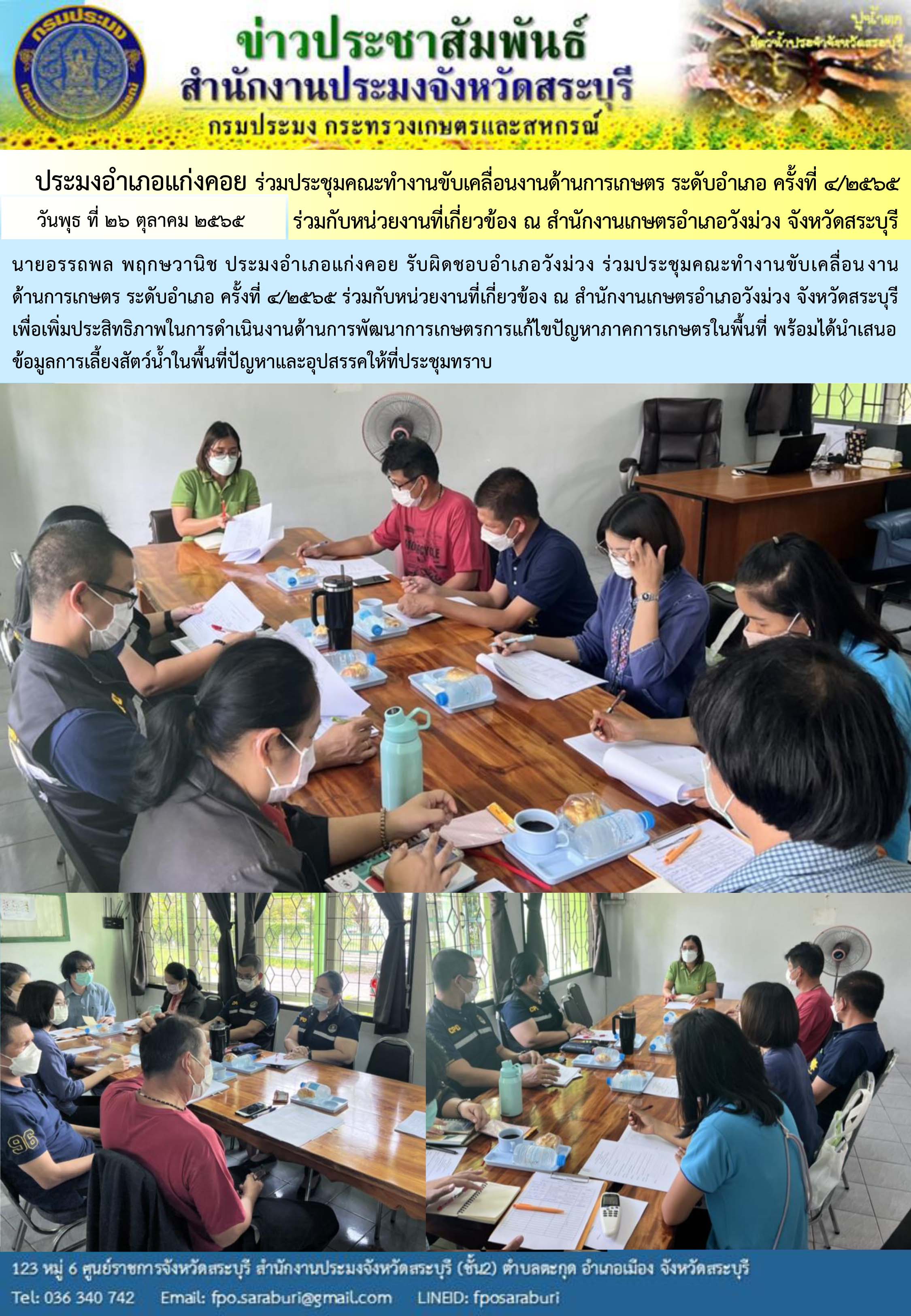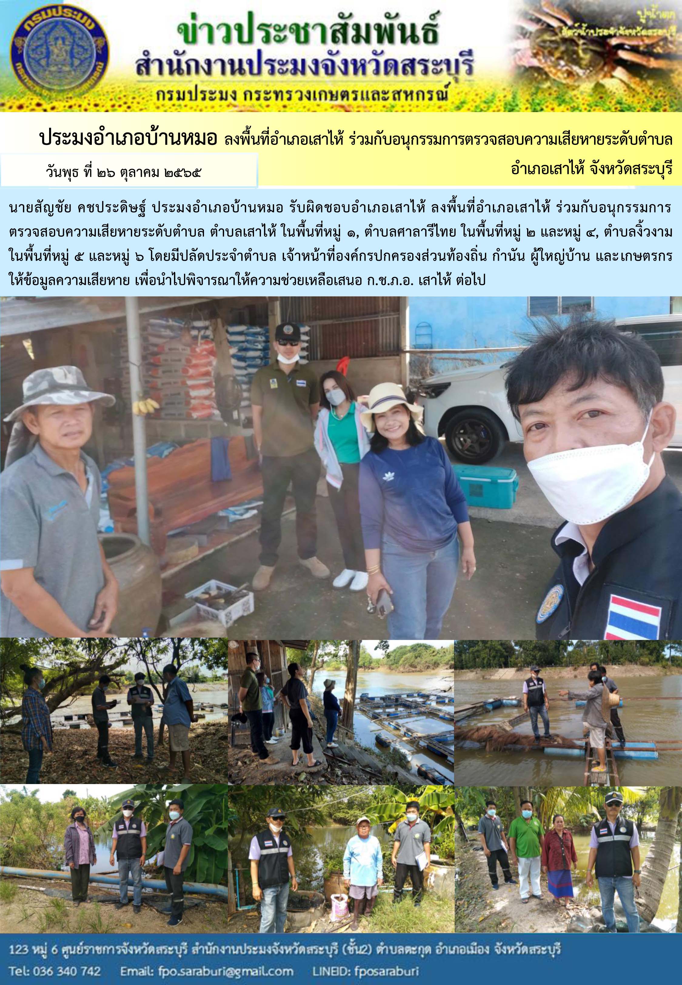ภารกิจประจำวันที่ 26 ตุลาคม 2565 สำนักงานประมงจังหวัดสระบุรี