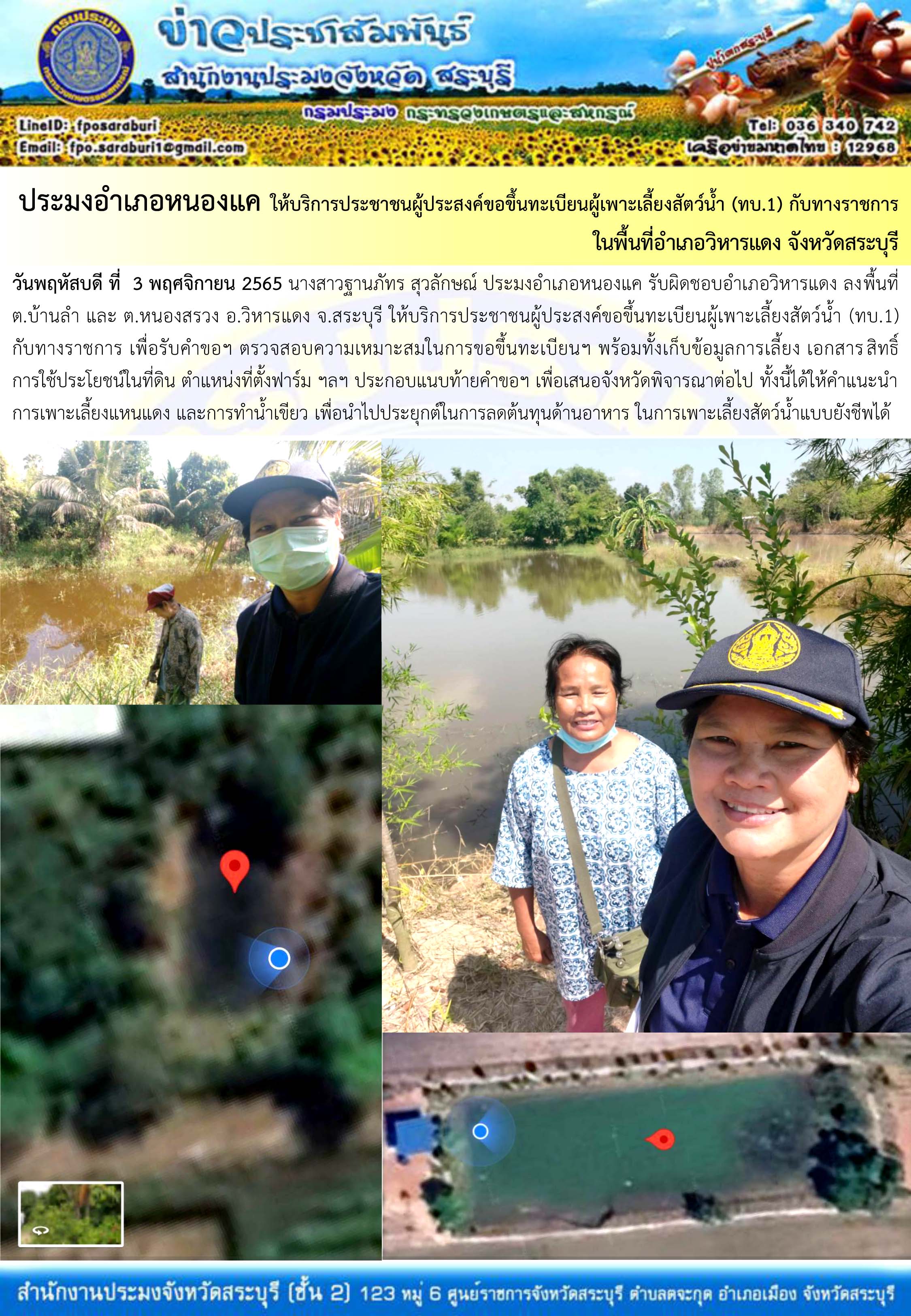 ภารกิจประจำวันที่ 3 พฤศจิกายน 2565 สำนักงานประมงจังหวัดสระบุรี
