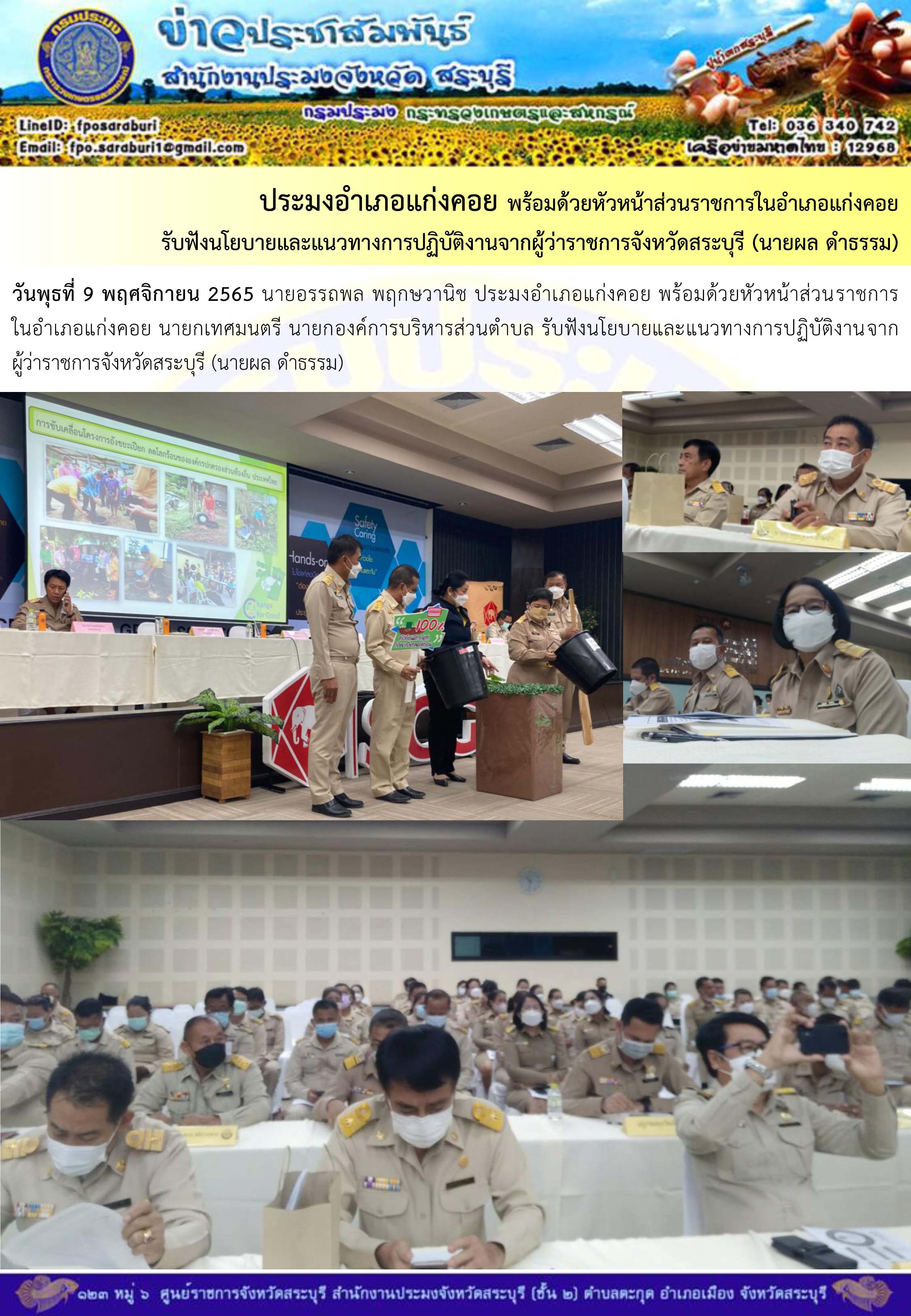 ภารกิจประจำวันที่ 9 พฤศจิกายน 2565 สำนักงานประมงจังหวัดสระบุรี