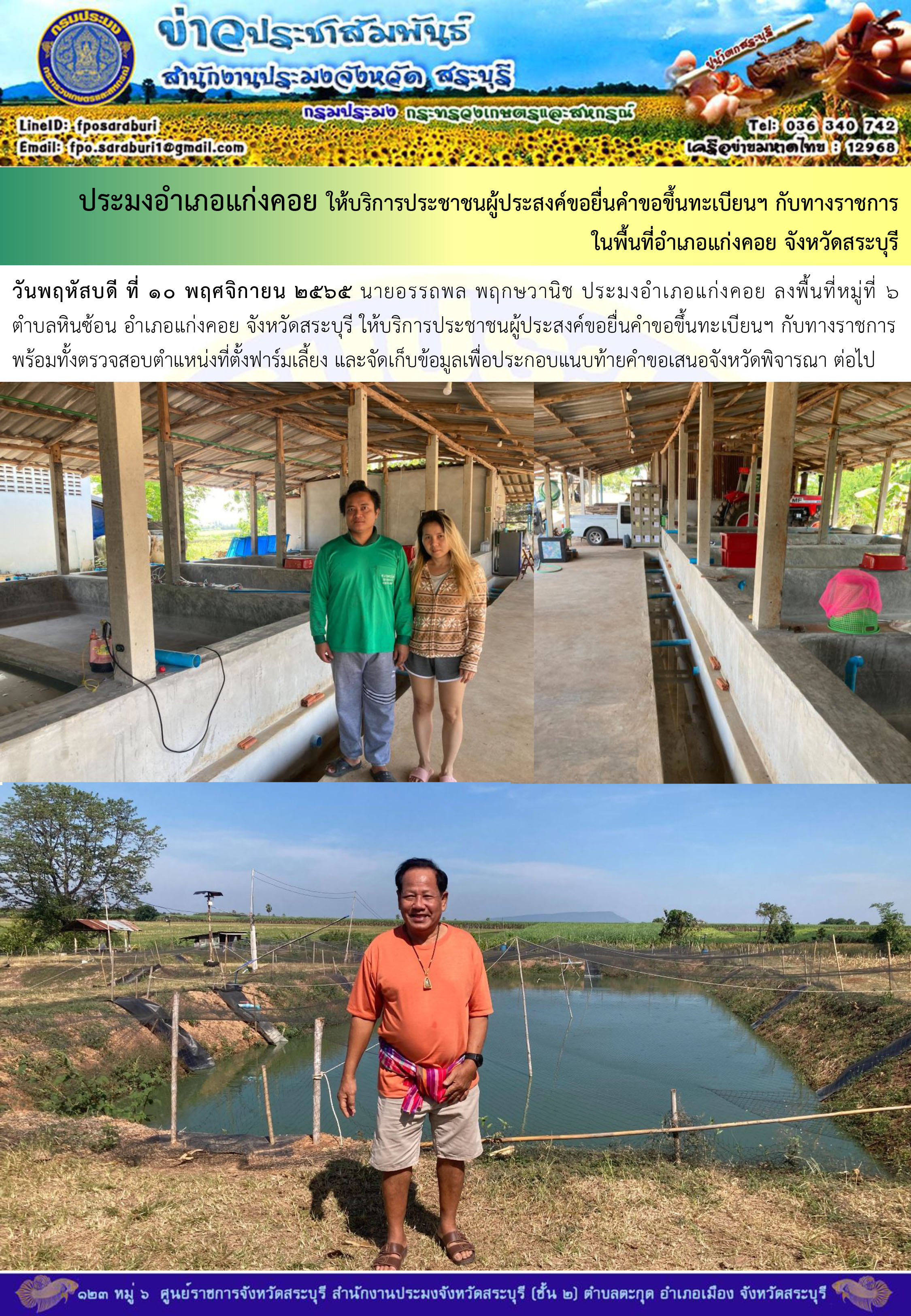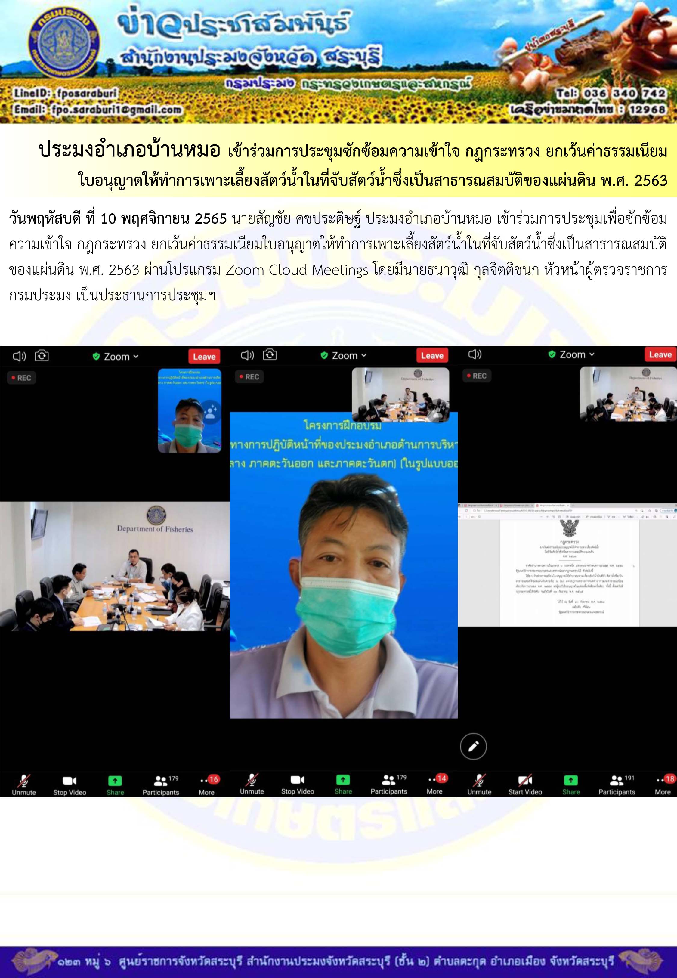 ภารกิจประจำวันที่ 10 พฤศจิกายน 2565 สำนักงานประมงจังหวัดสระบุรี