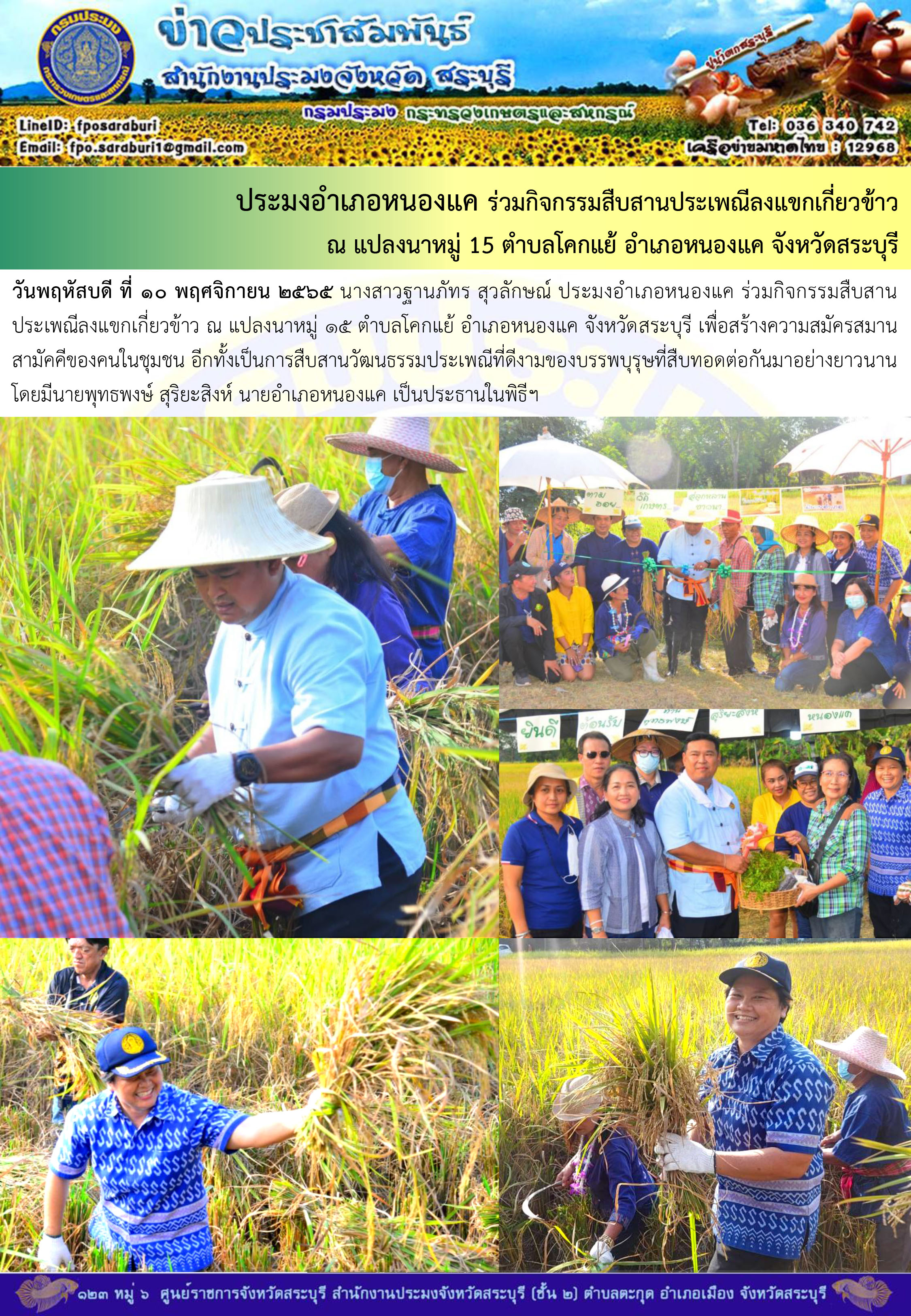 ภารกิจประจำวันที่ 10 พฤศจิกายน 2565 สำนักงานประมงจังหวัดสระบุรี..คลิก