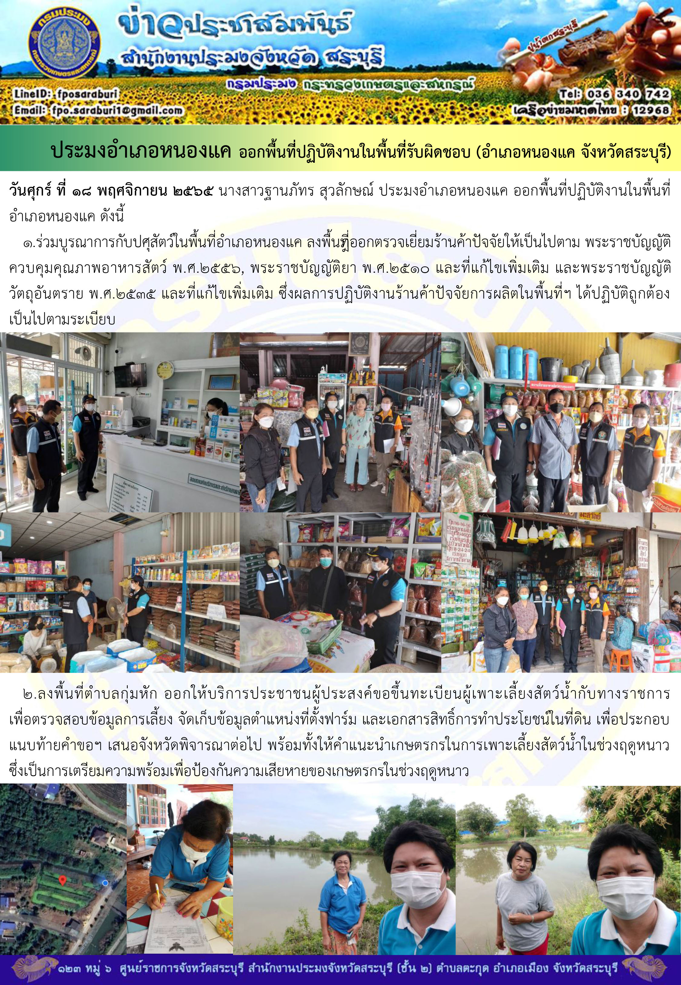 ภารกิจประจำวันที่ 18 พฤศจิกายน 2565 สำนักงานประมงจังหวัดสระบุรี
