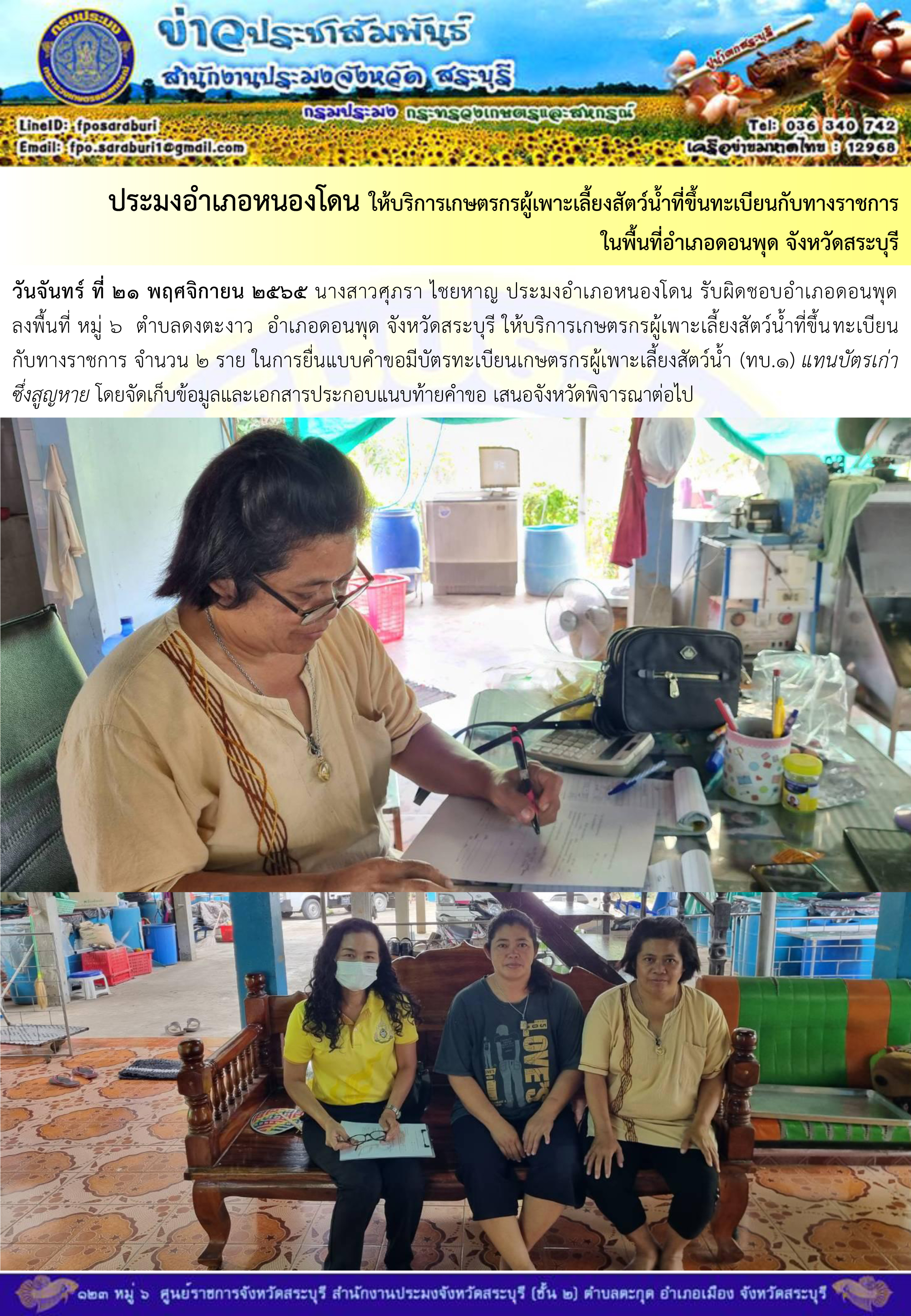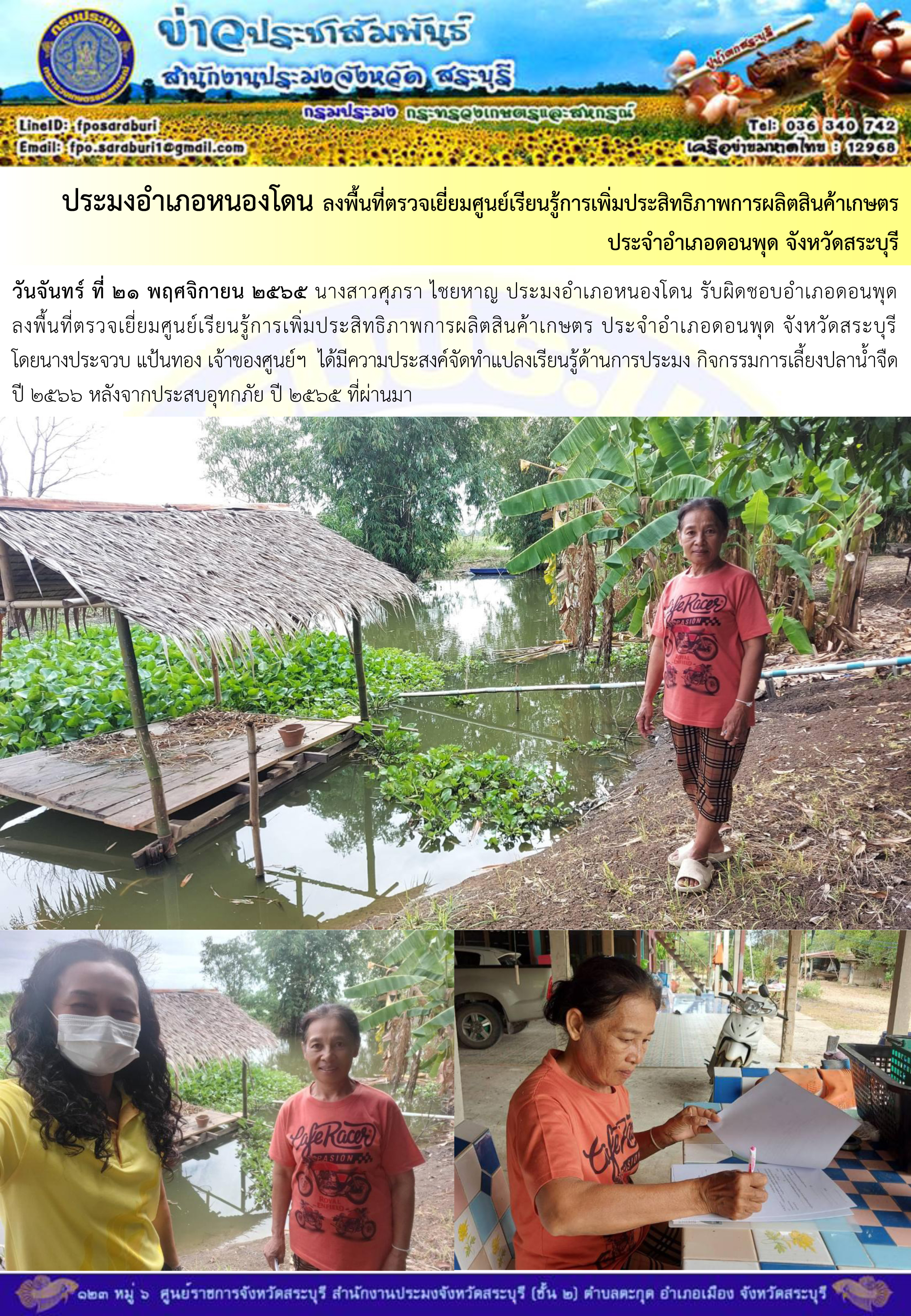 ภารกิจประจำวันที่ 21 พฤศจิกายน 2565 สำนักงานประมงจังหวัดสระบุรี