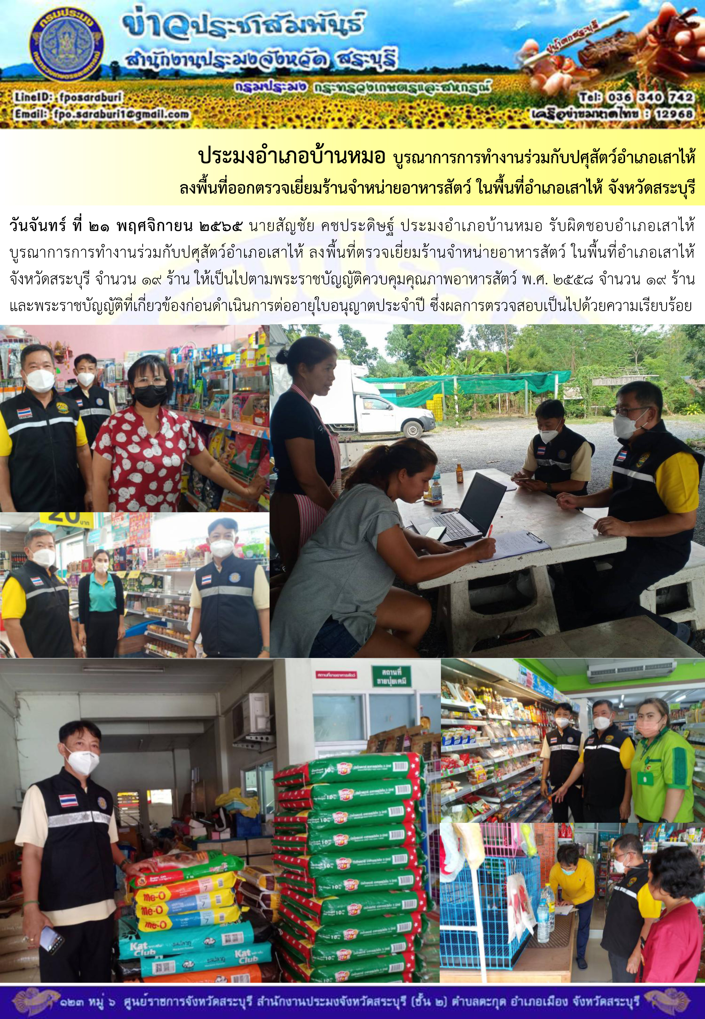 ภารกิจประจำวันที่ 21 พฤศจิกายน 2565 สำนักงานประมงจังหวัดสระบุรี..คลิก