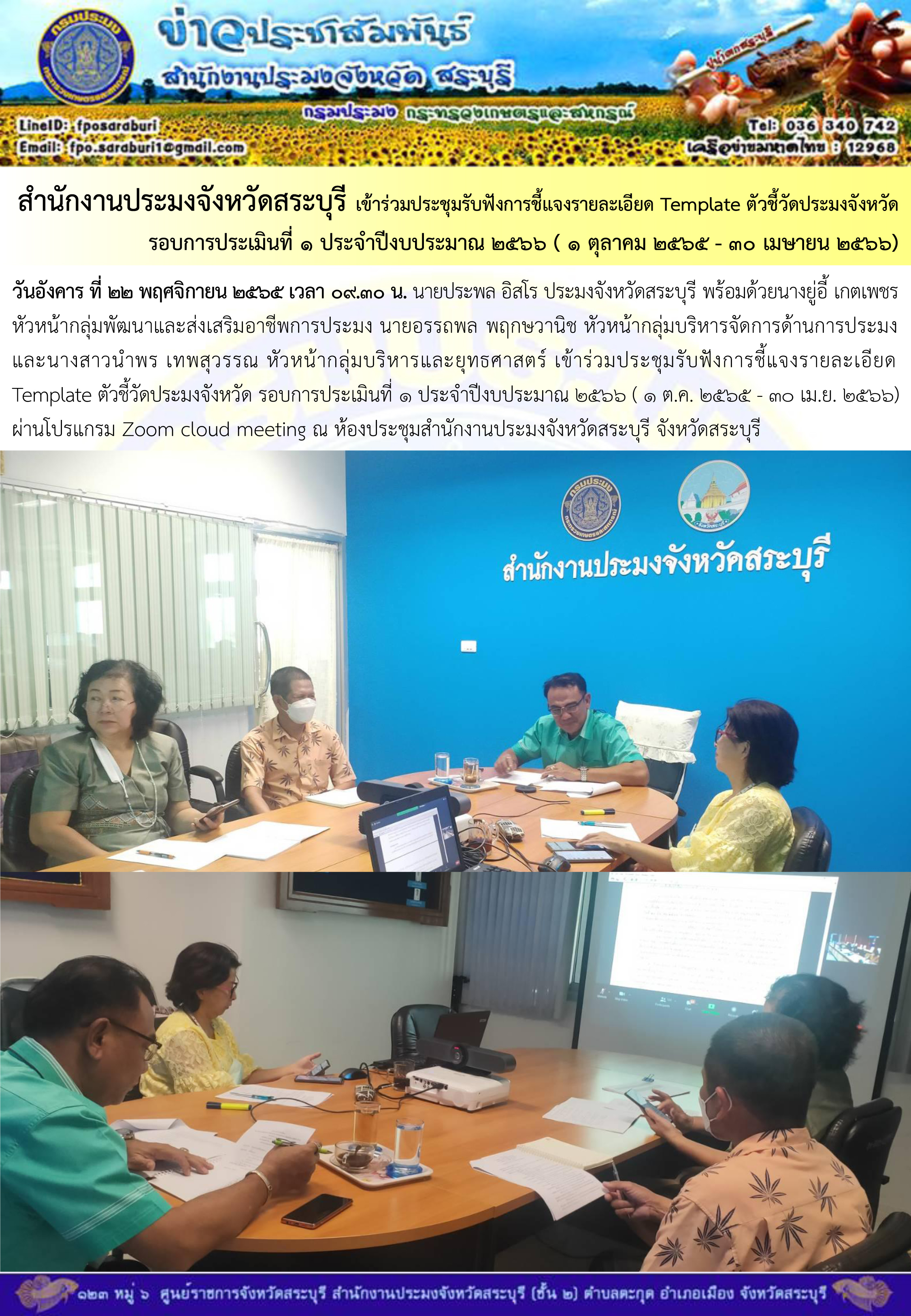 ภารกิจประจำวันที่ 22 พฤศจิกายน 2565 สำนักงานประมงจังหวัดสระบุรี..คลิก