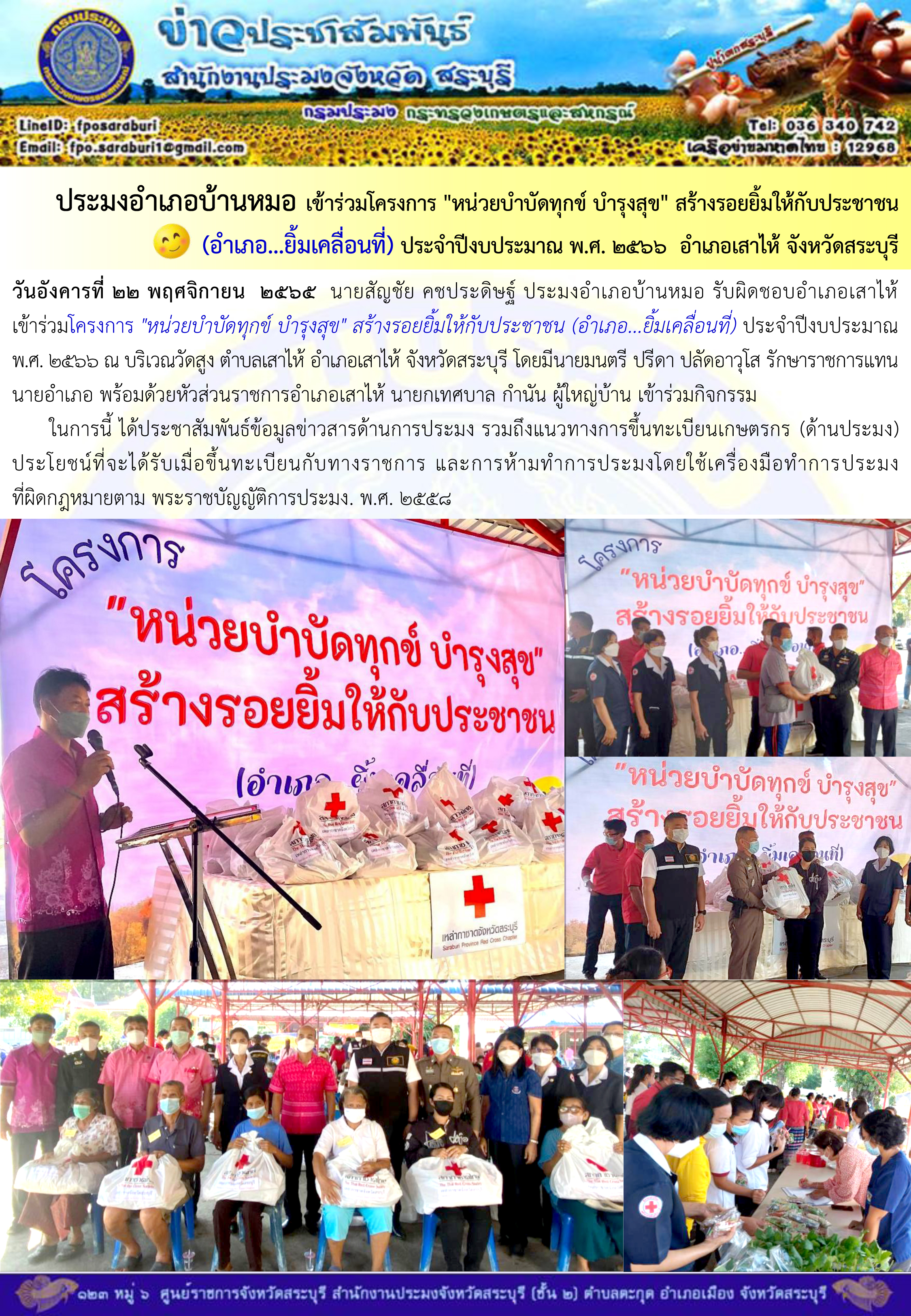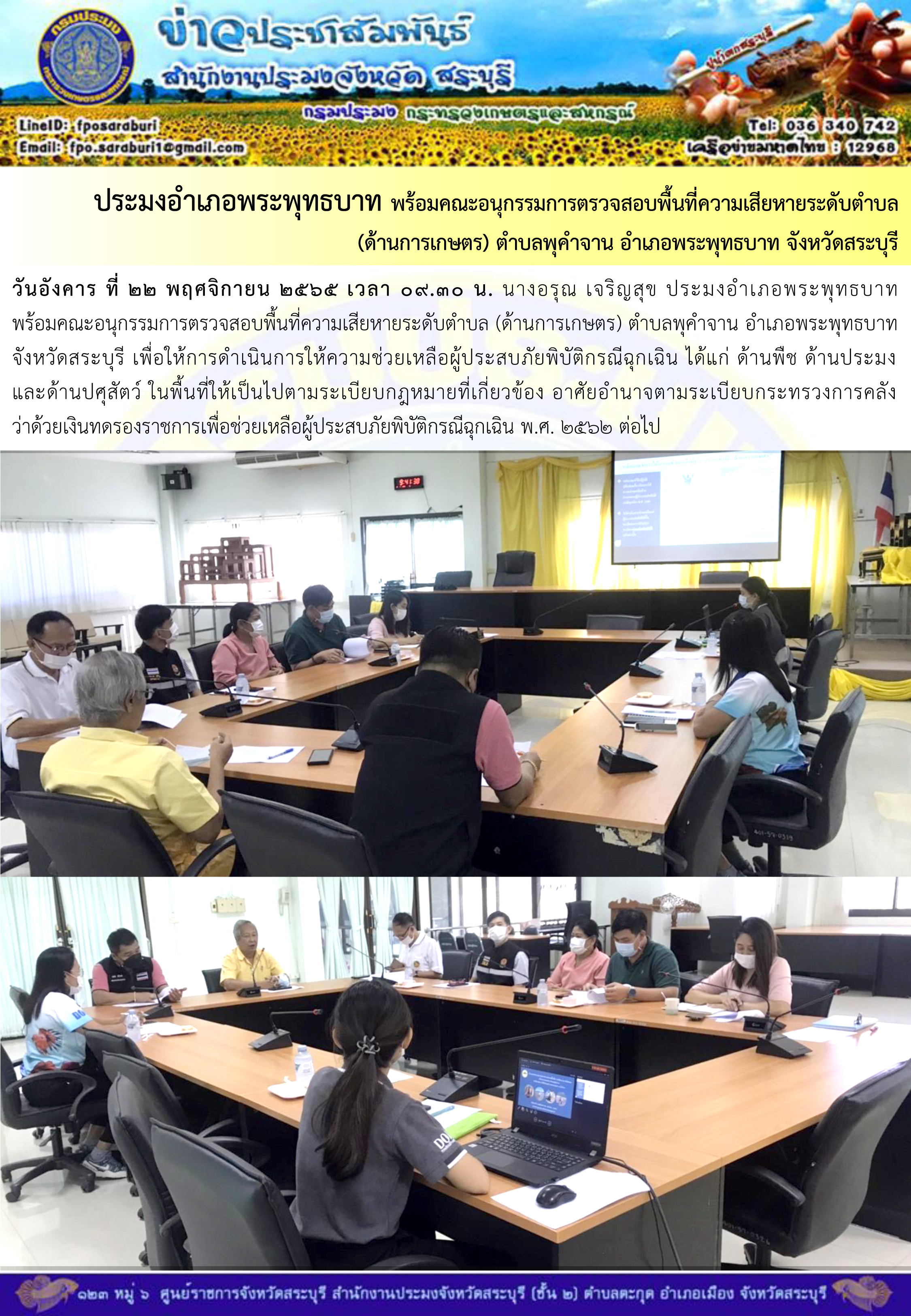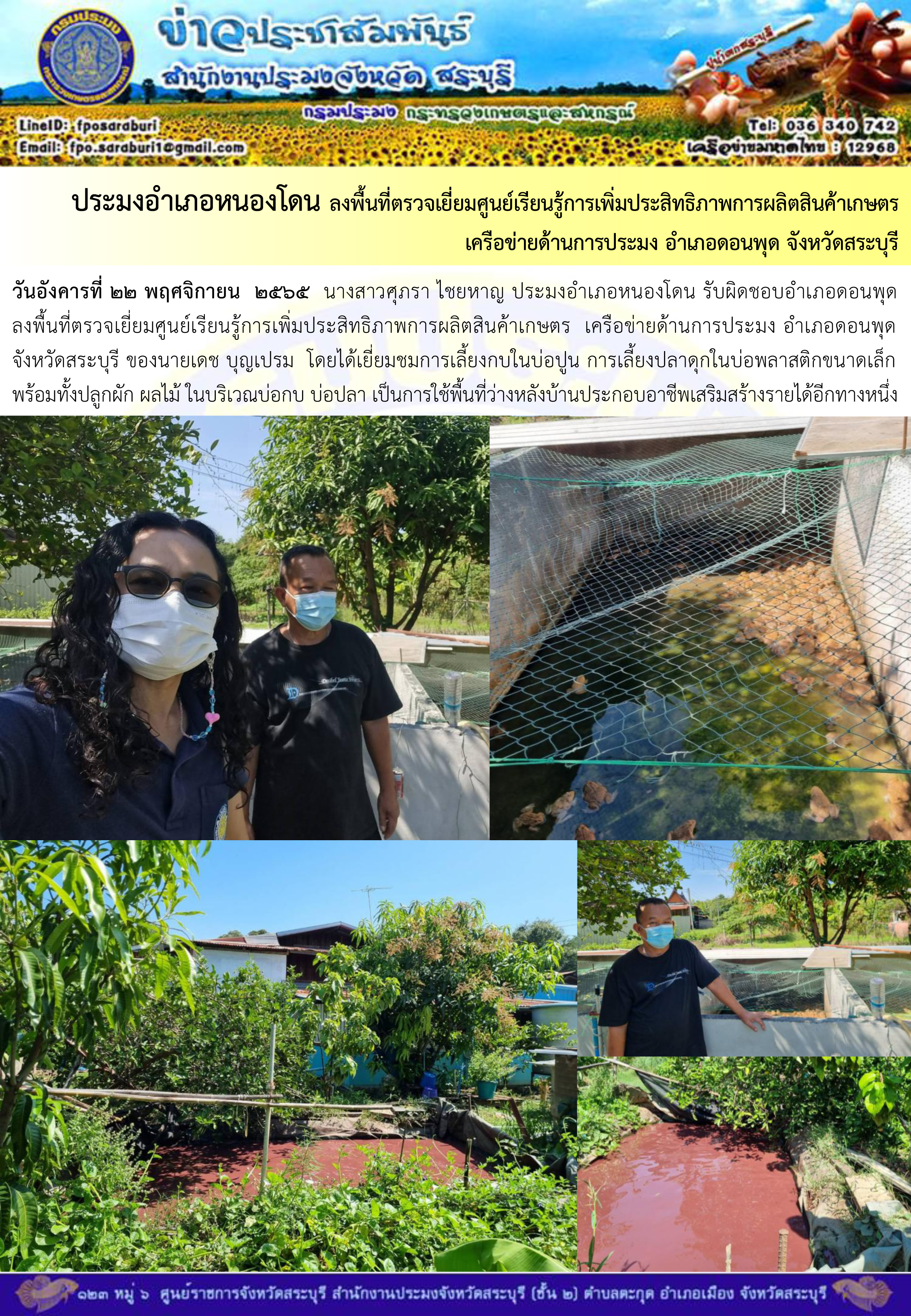 ภารกิจประจำวันที่ 22 พฤศจิกายน 2565 สำนักงานประมงจังหวัดสระบุรี
