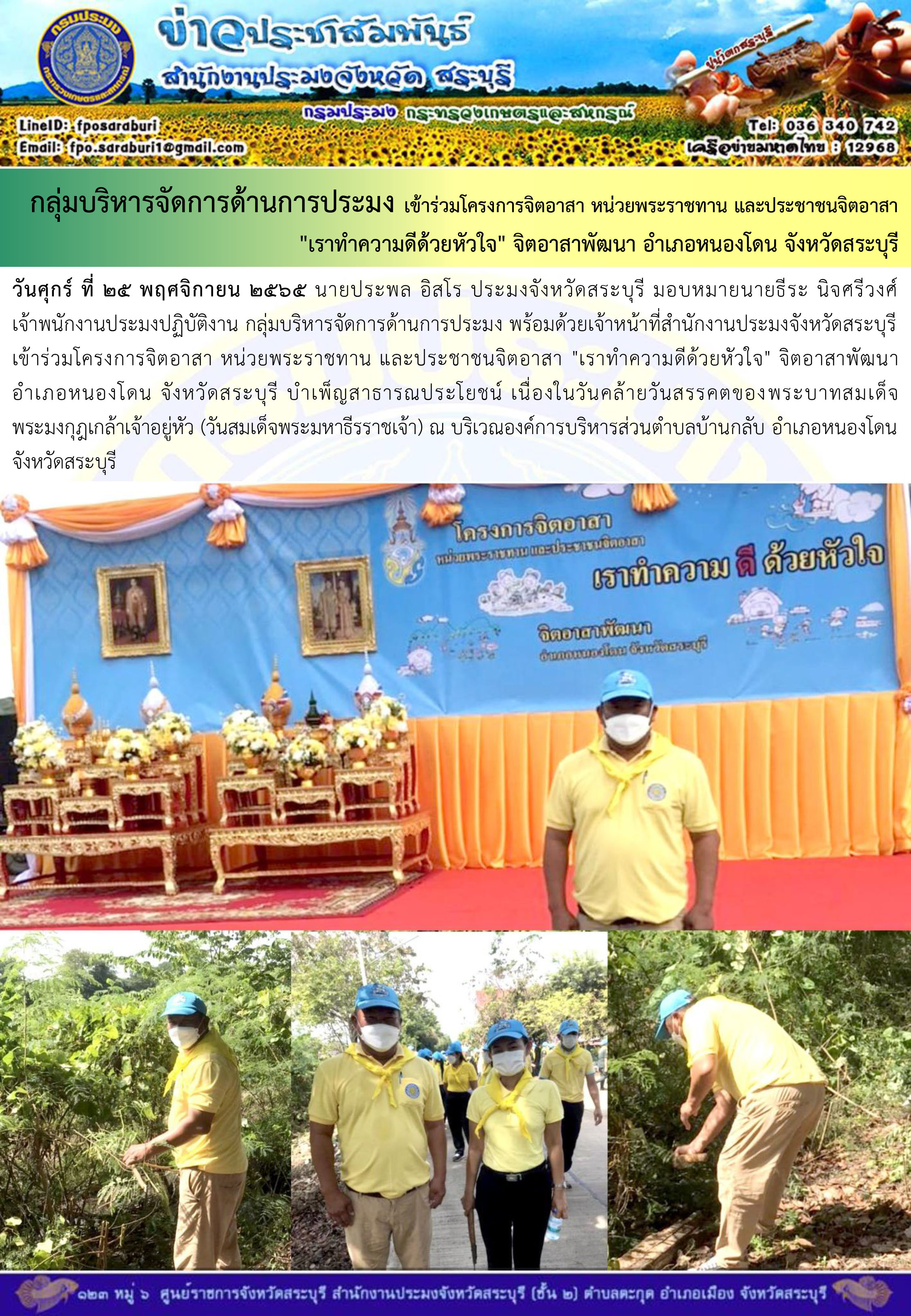 ภารกิจประจำวันที่ 25 พฤศจิกายน 2565 สำนักงานประมงจังหวัดสระบุรี