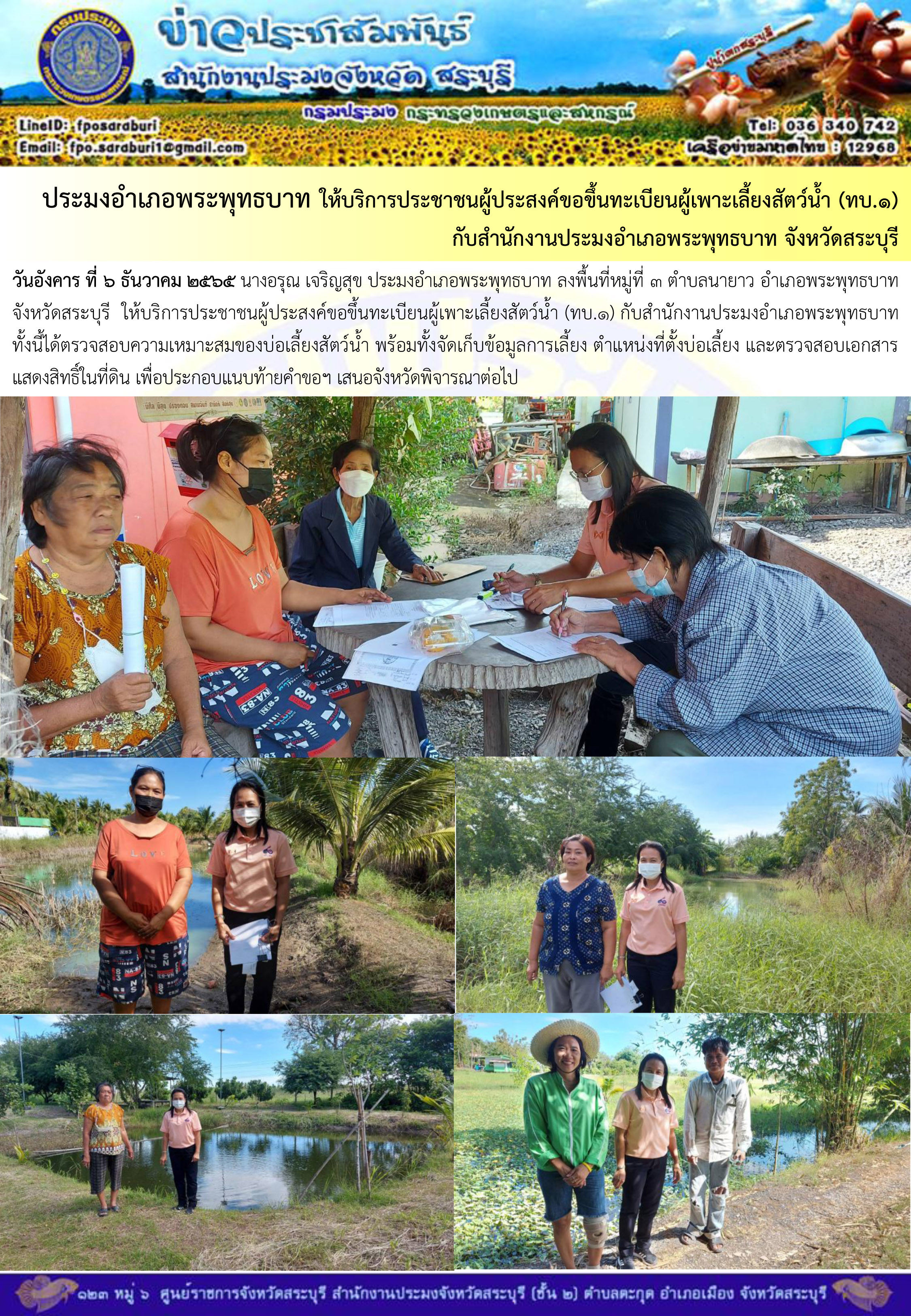ภารกิจประจำวันที่ 6 ธันวาคม 2565 สำนักงานประมงจังหวัดสระบุรี