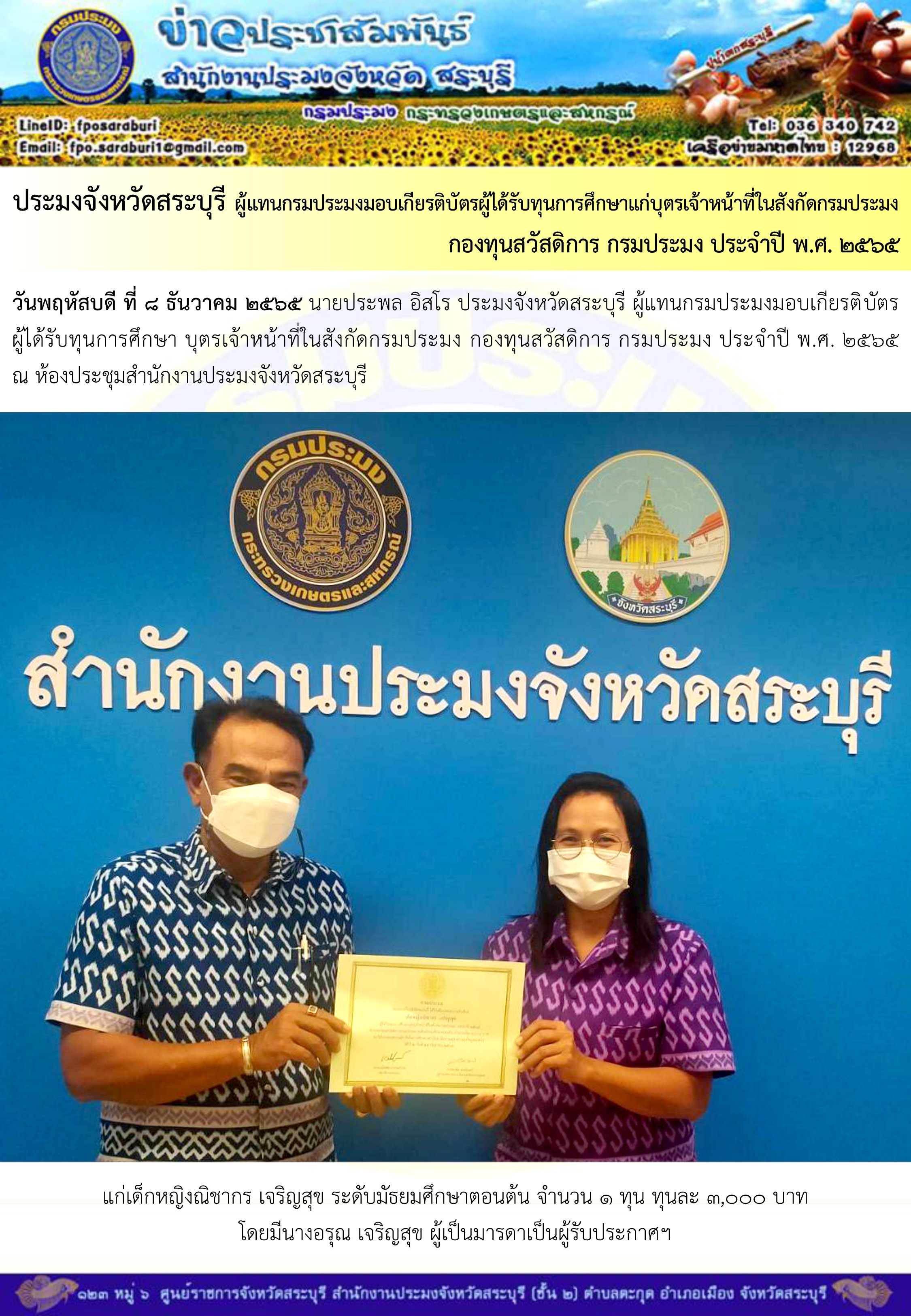 ภารกิจประจำวันที่ 8 ธันวาคม 2565 สำนักงานประมงจังหวัดสระบุรี