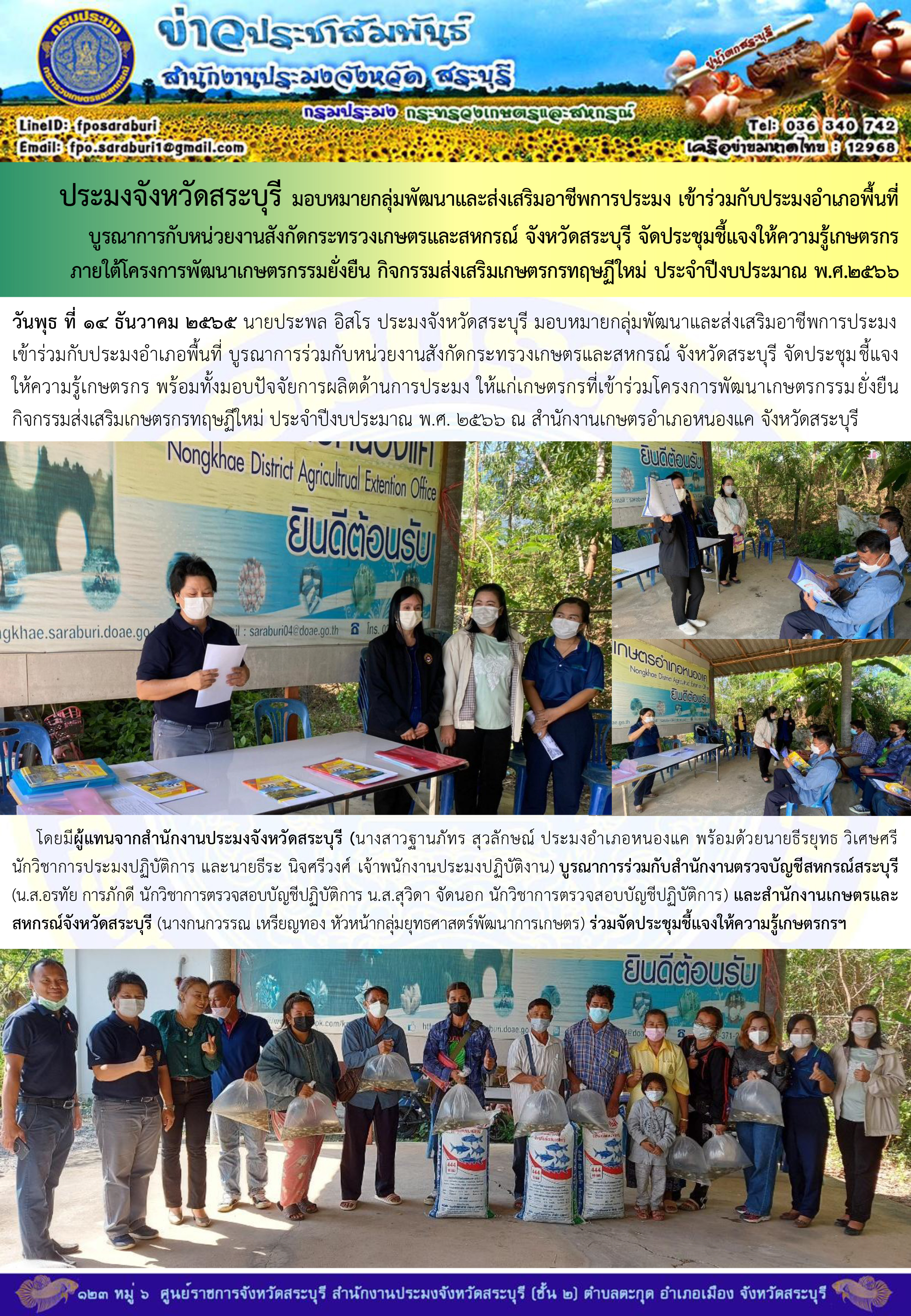 ภารกิจประจำวันที่ 14 ธันวาคม 2565 สำนักงานประมงจังหวัดสระบุรี