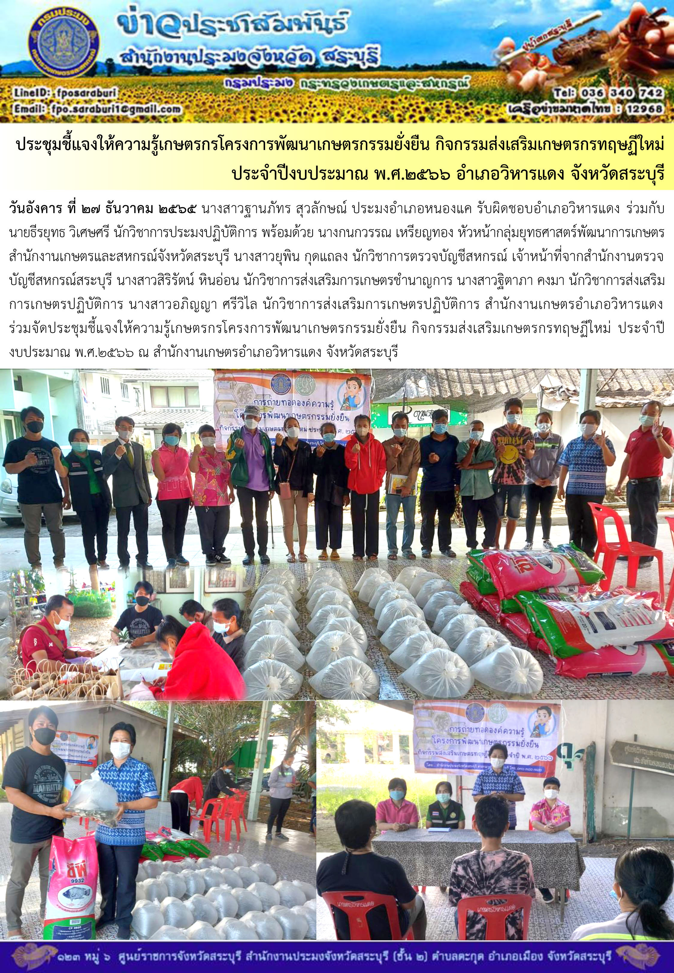 ภารกิจประจำวันที่ 27 ธันวาคม 2565 สำนักงานประมงจังหวัดสระบุรี