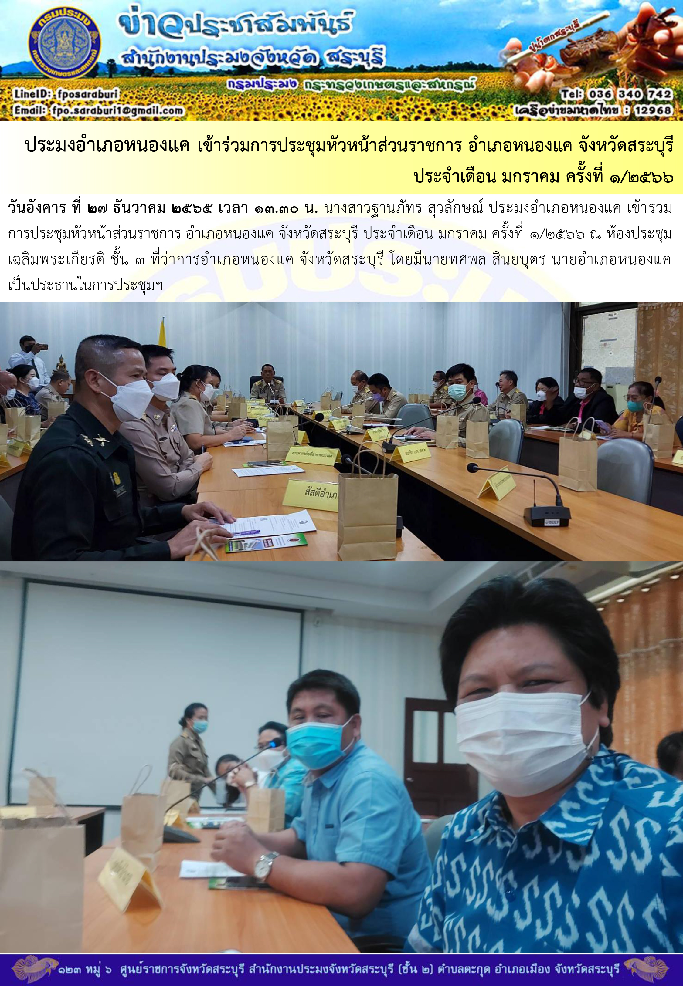 ภารกิจประจำวันที่ 27 ธันวาคม 2565 สำนักงานประมงจังหวัดสระบุรี..คลิก