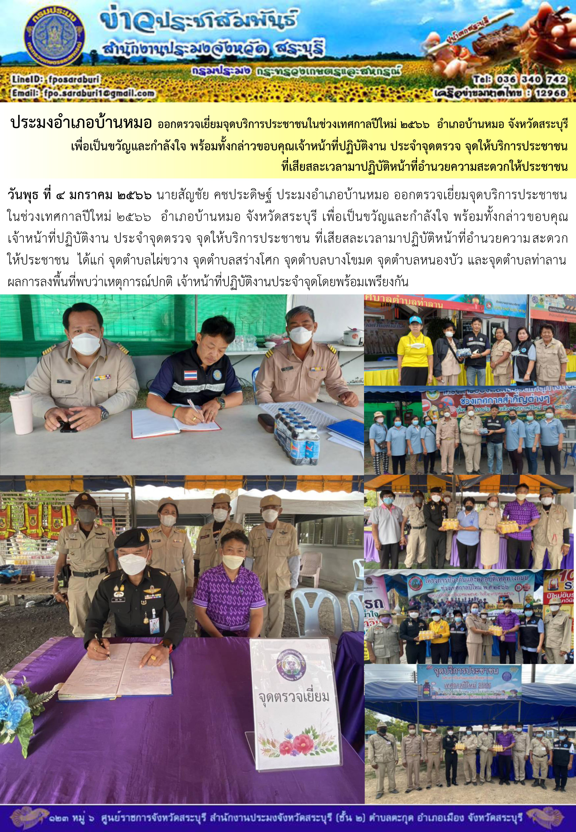 ภารกิจประจำวันที่ 4 มกราคม 2566 สำนักงานประมงจังหวัดสระบุรี