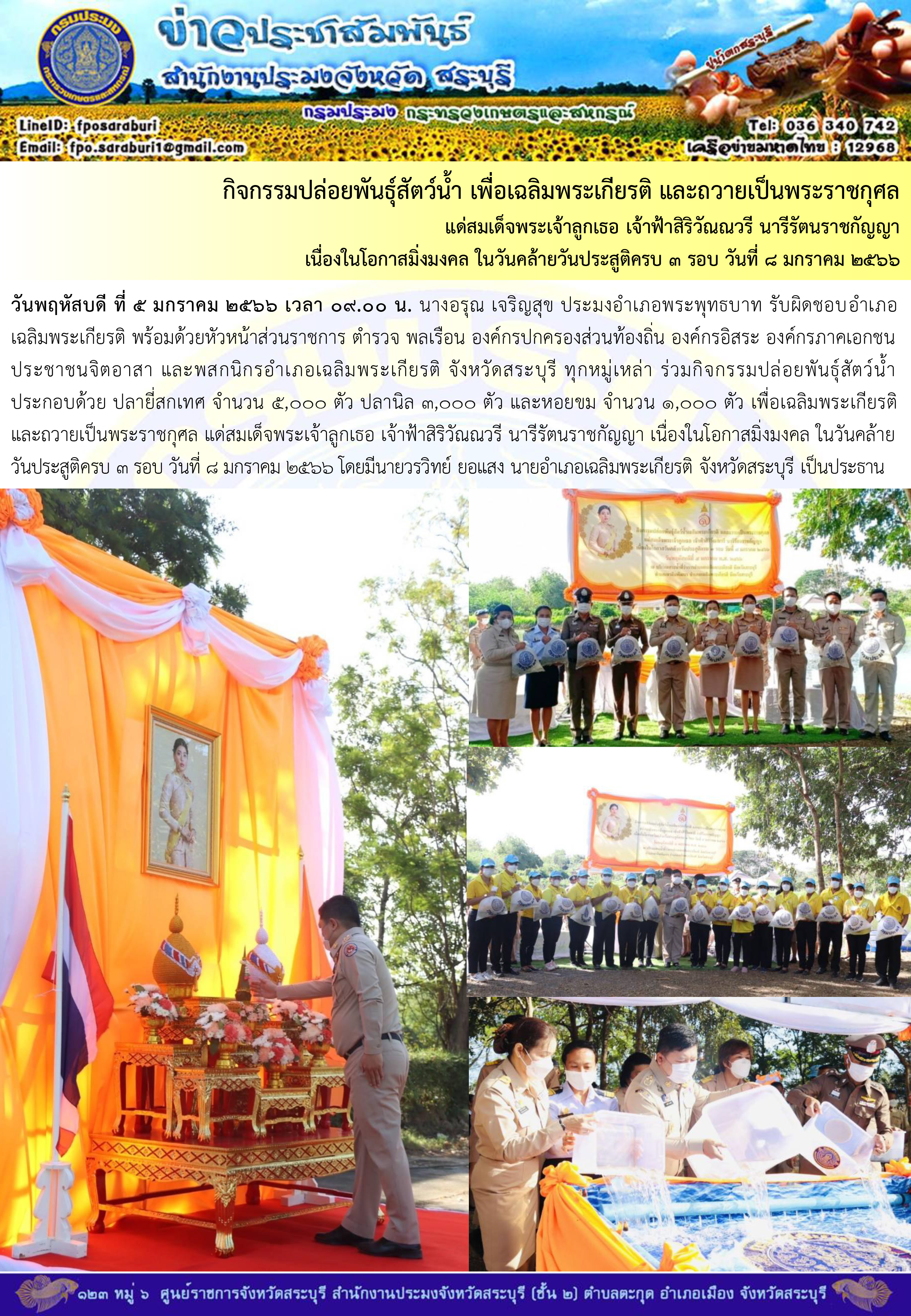 ภารกิจประจำวันที่ 5 มกราคม 2566 สำนักงานประมงจังหวัดสระบุรี