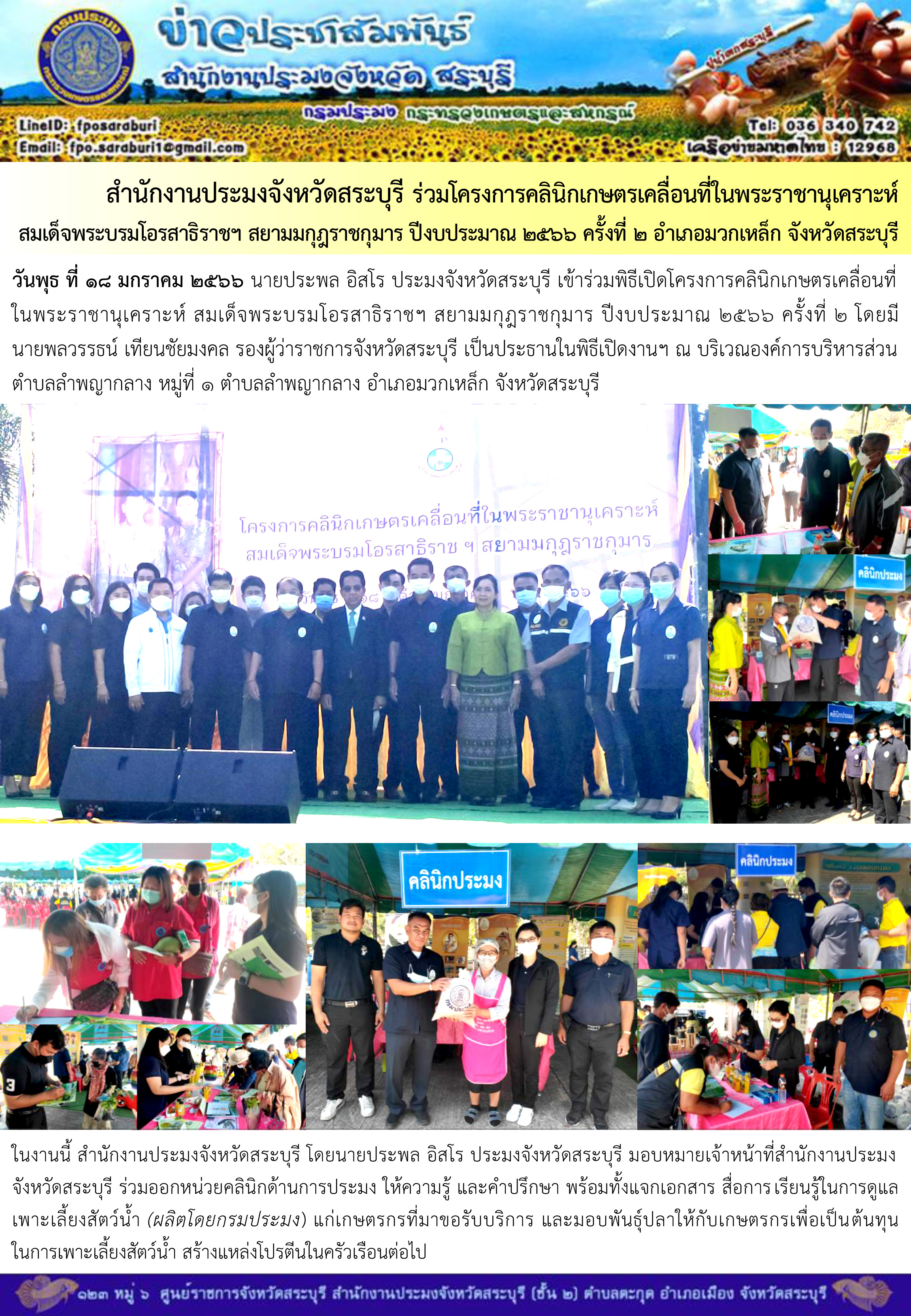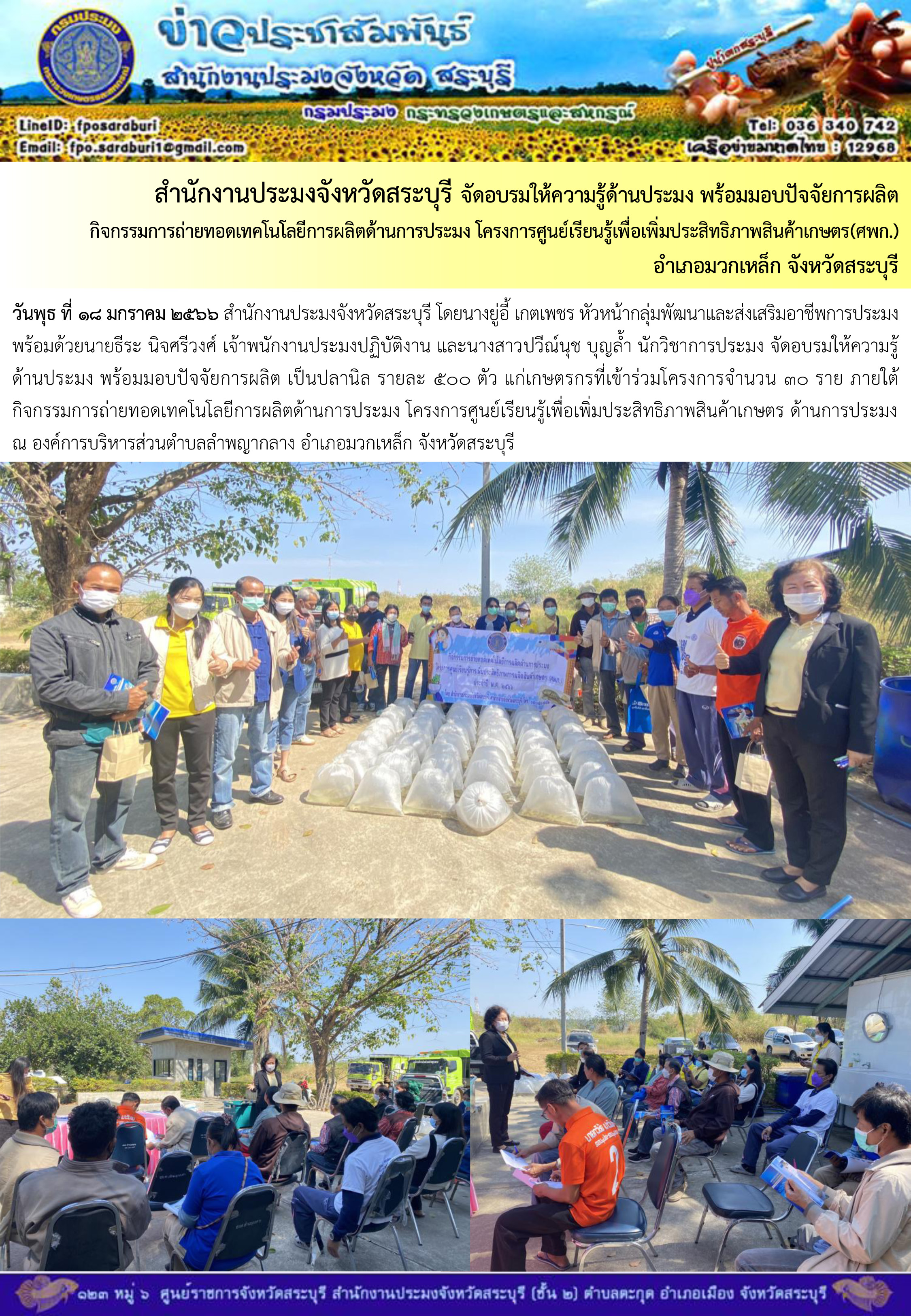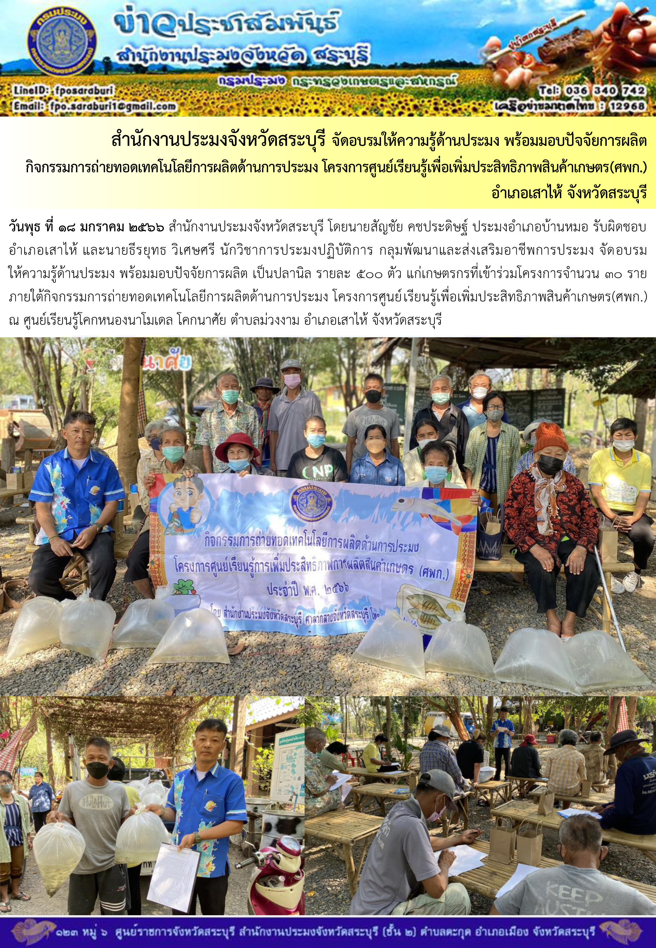 ภารกิจประจำวันที่ 18 มกราคม 2566 สำนักงานประมงจังหวัดสระบุรี