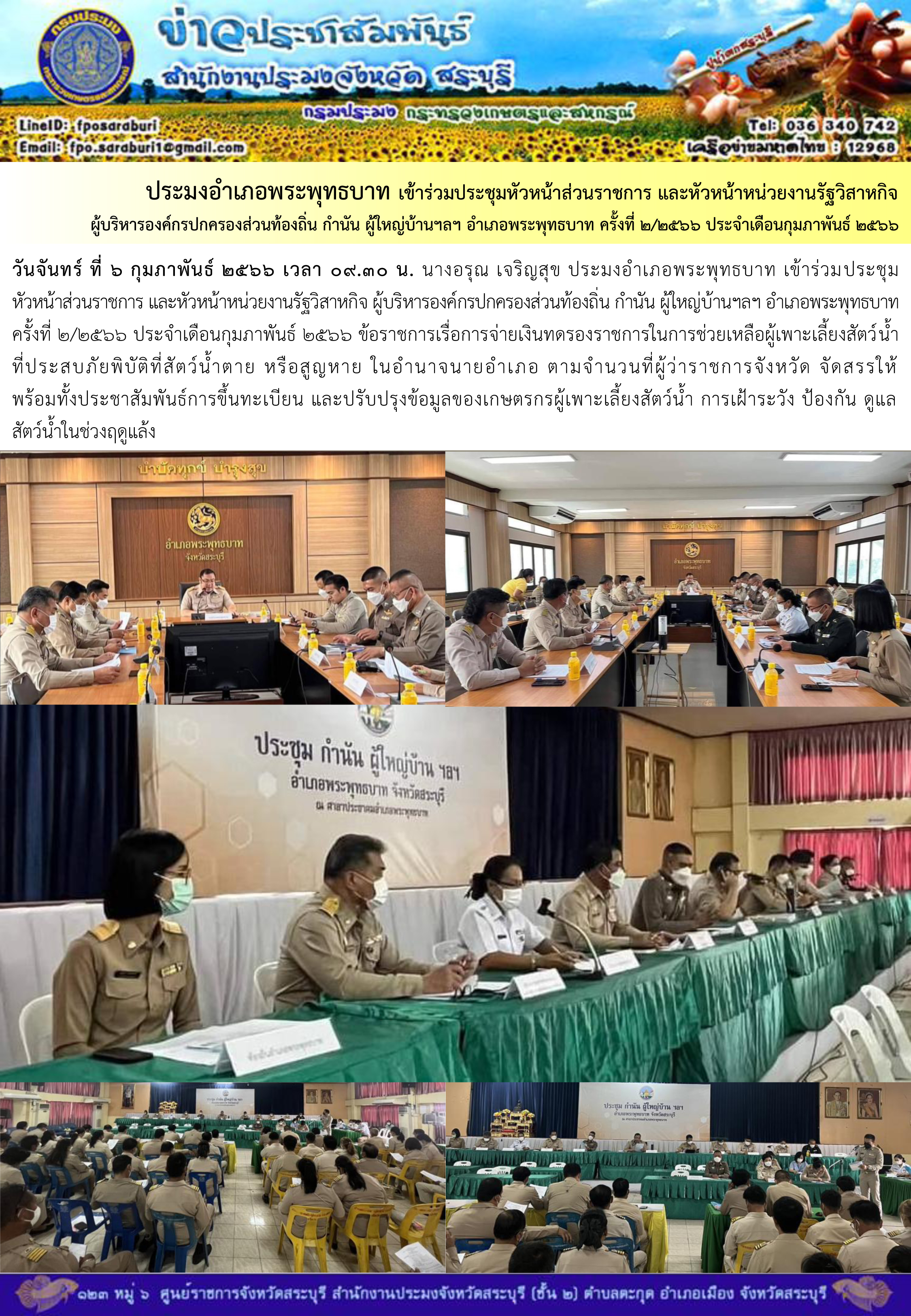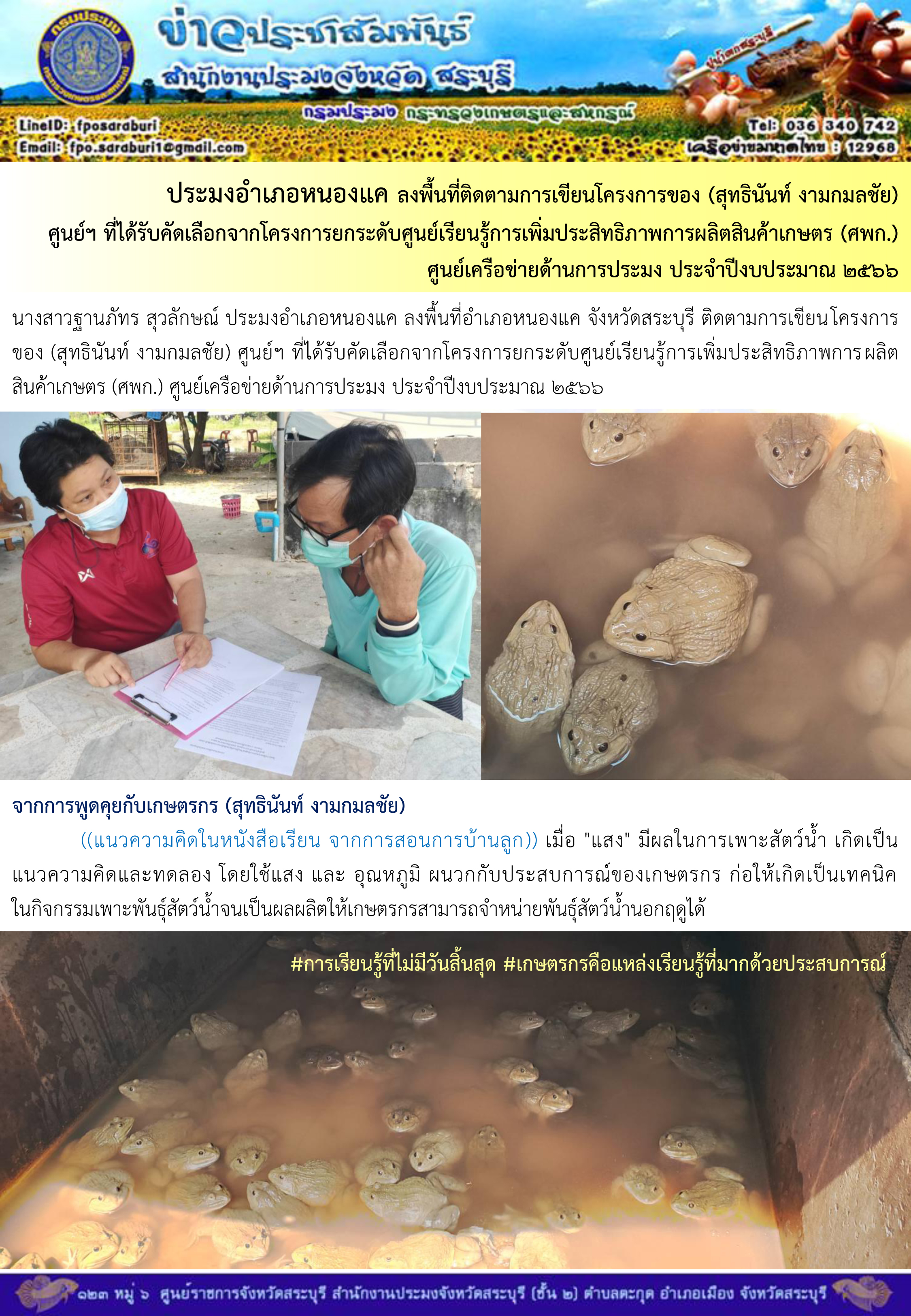 ภารกิจประจำวันที่ 6 กุมภาพันธ์ 2566 สำนักงานประมงจังหวัดสระบุรี