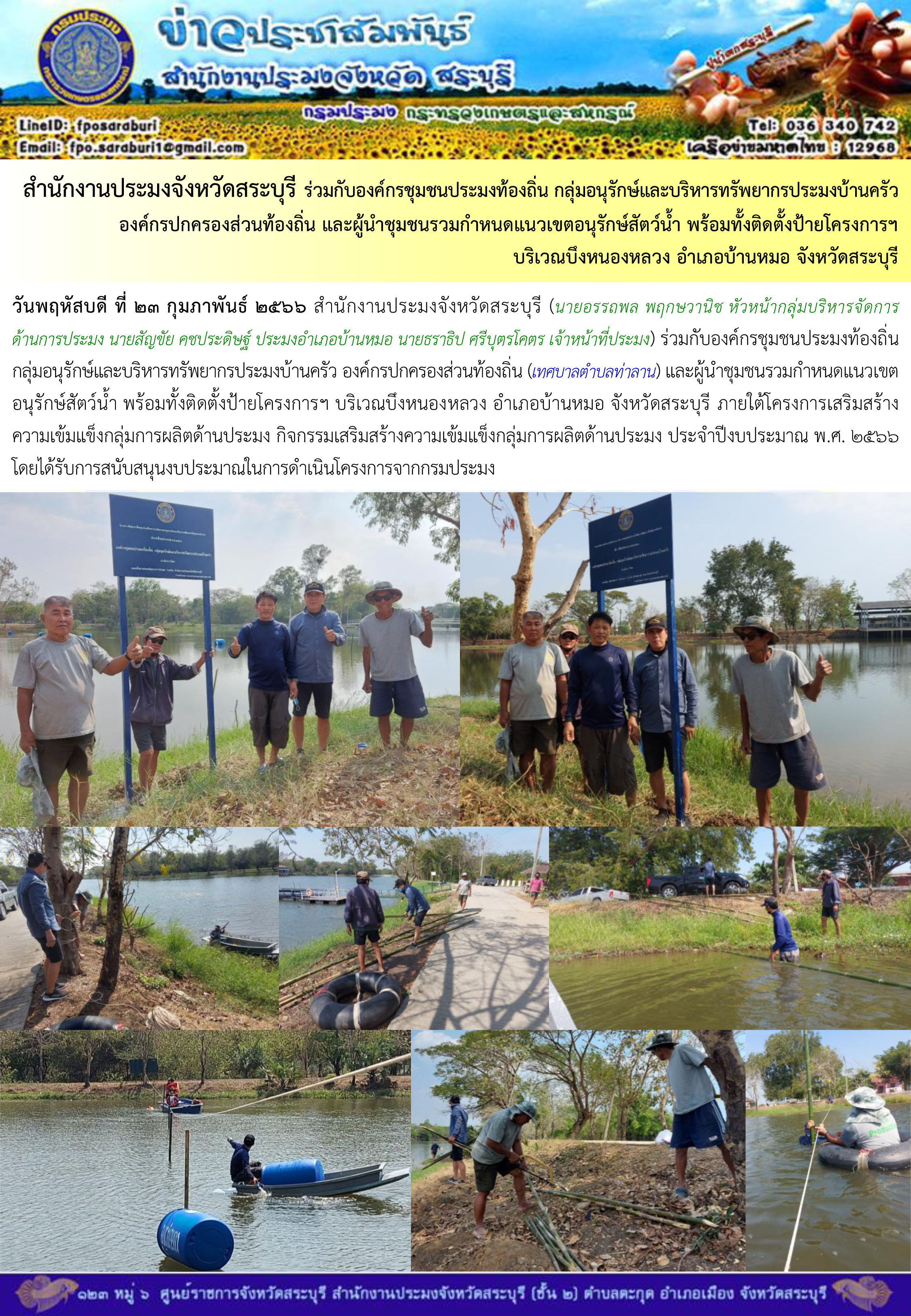 ภารกิจประจำวันที่ 23 กุมภาพันธ์ 2566 สำนักงานประมงจังหวัดสระบุรี