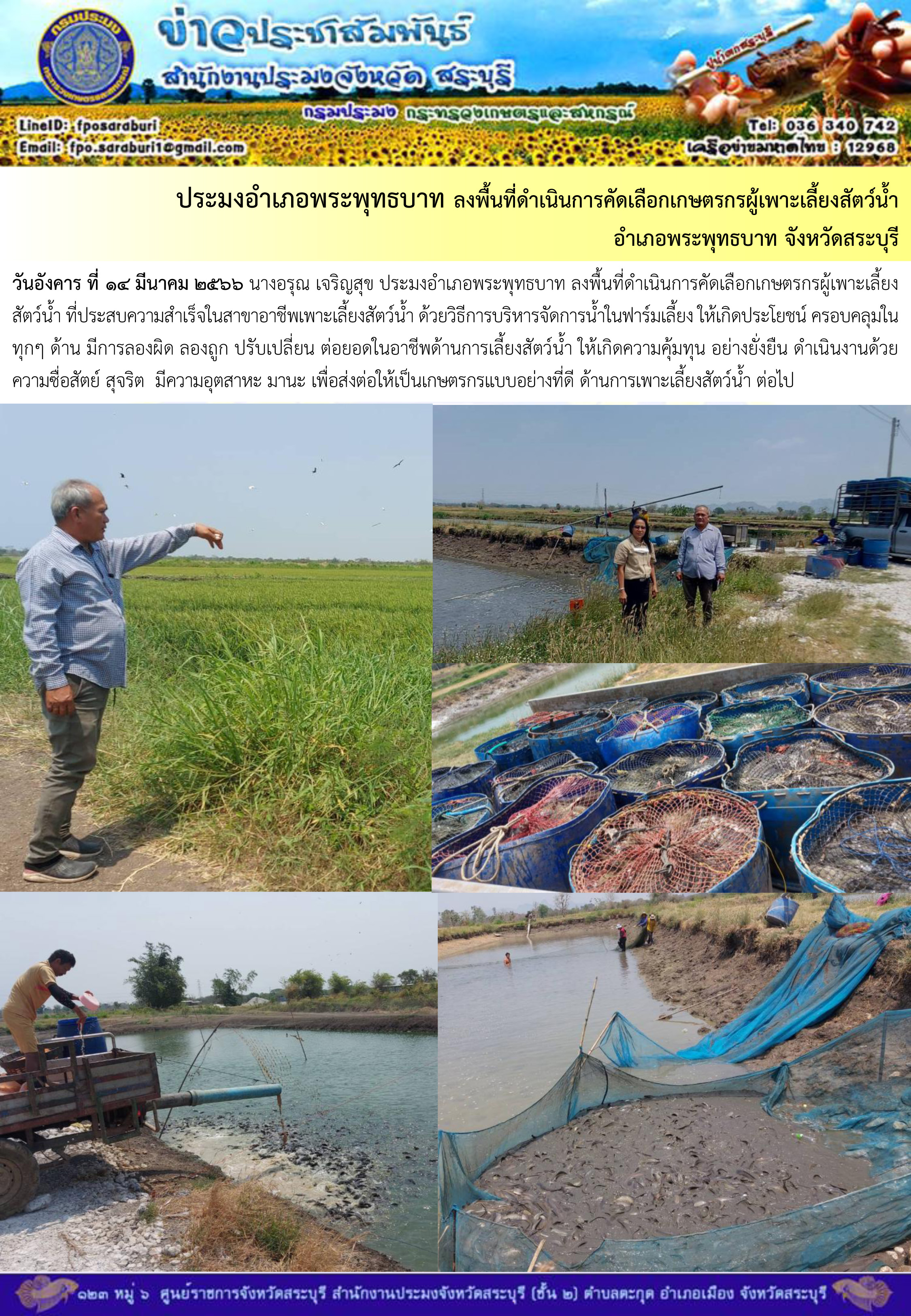 ภารกิจประจำวันที่ 14 มีนาคม 2566 สำนักงานประมงจังหวัดสระบุรี