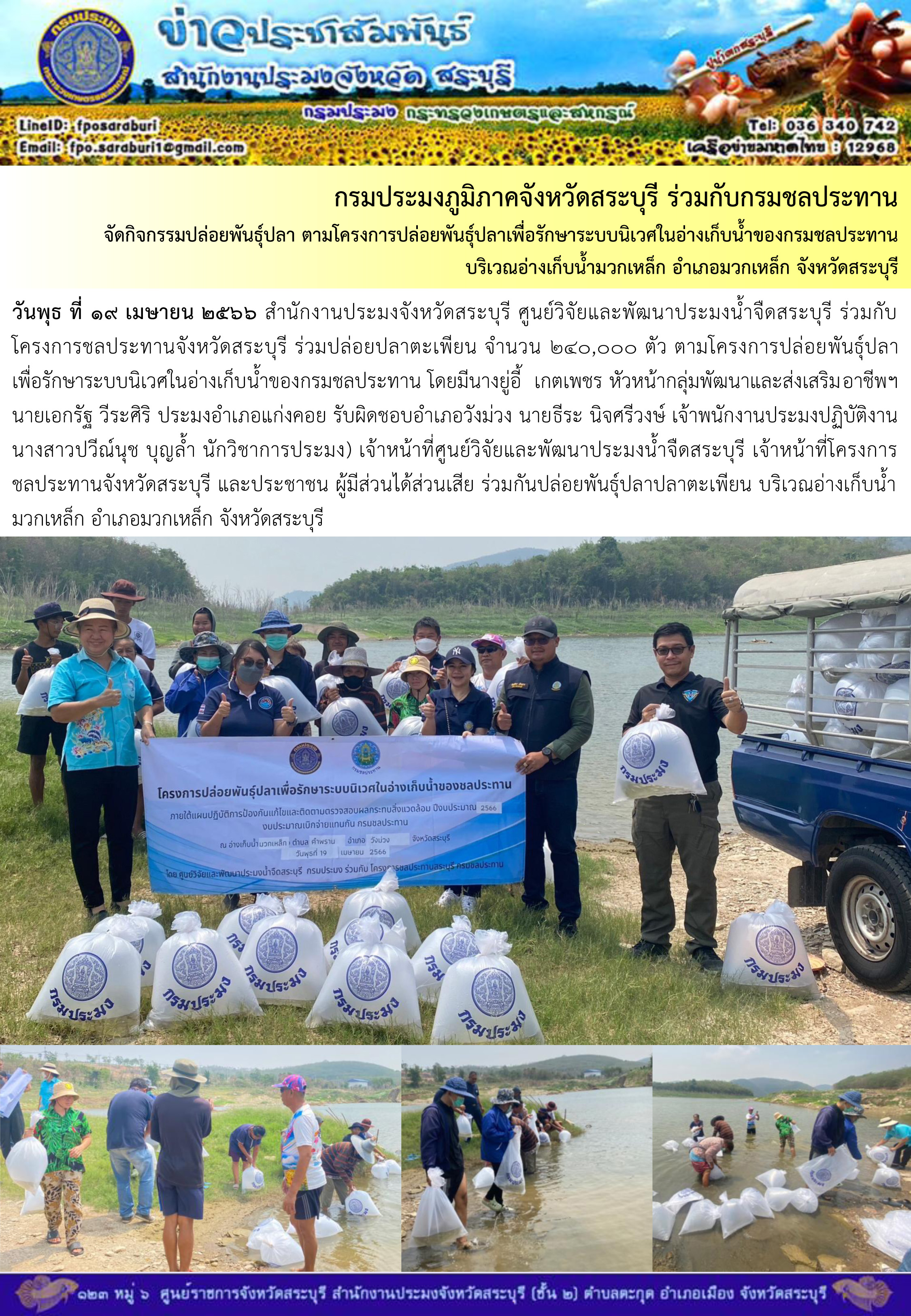 ภารกิจประจำวันที่ 19 เมษายน 2566 สำนักงานประมงจังหวัดสระบุรี