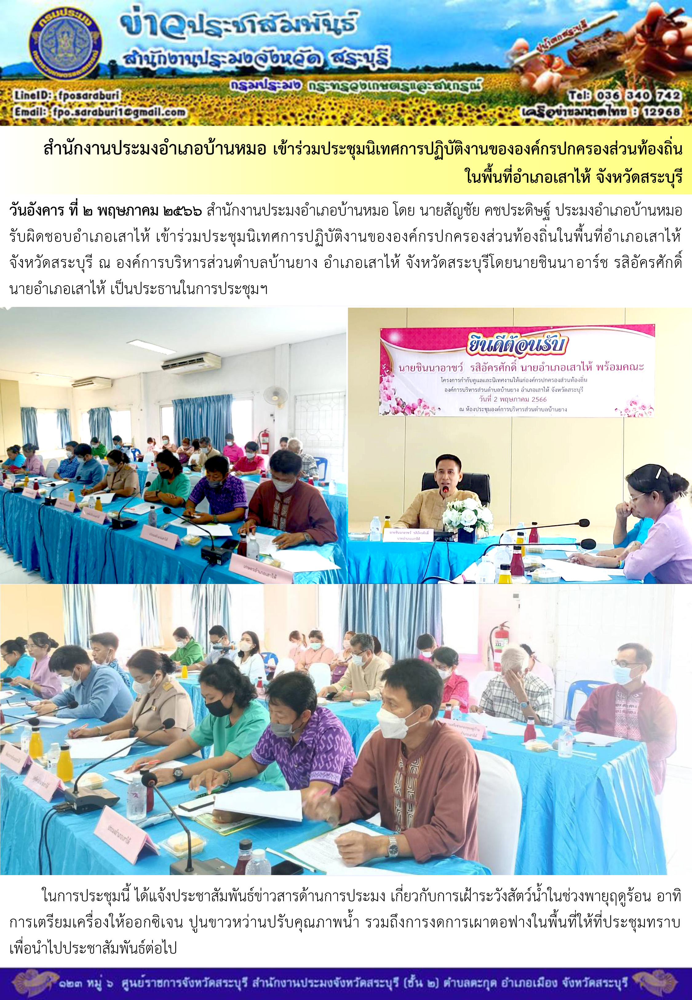 ภารกิจประจำวันที่ 2 พฤษภาคม 2566 สำนักงานประมงจังหวัดสระบุรี..คลิก