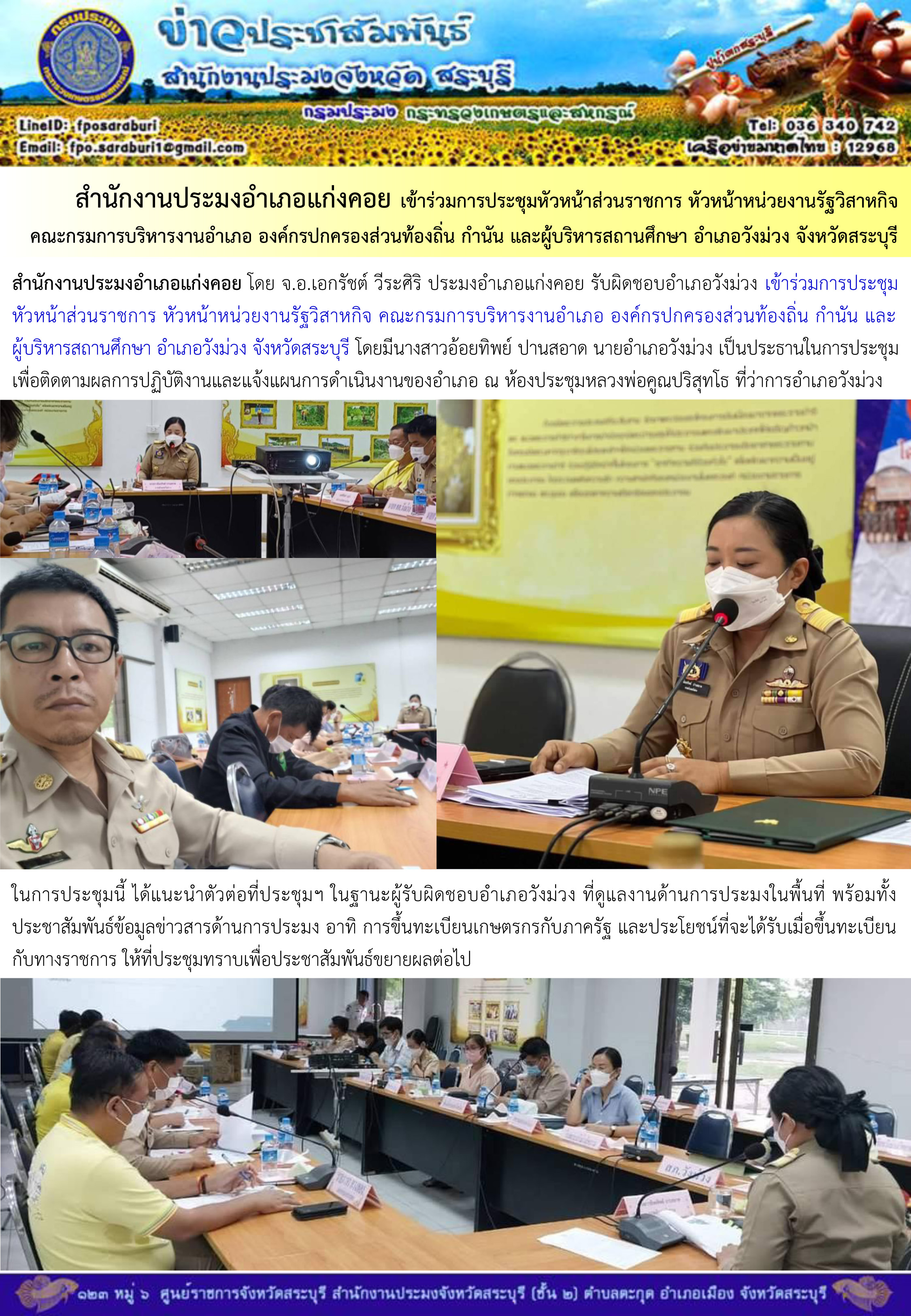 ภารกิจประจำวันที่ 8 พฤษภาคม 2566 สำนักงานประมงจังหวัดสระบุรี