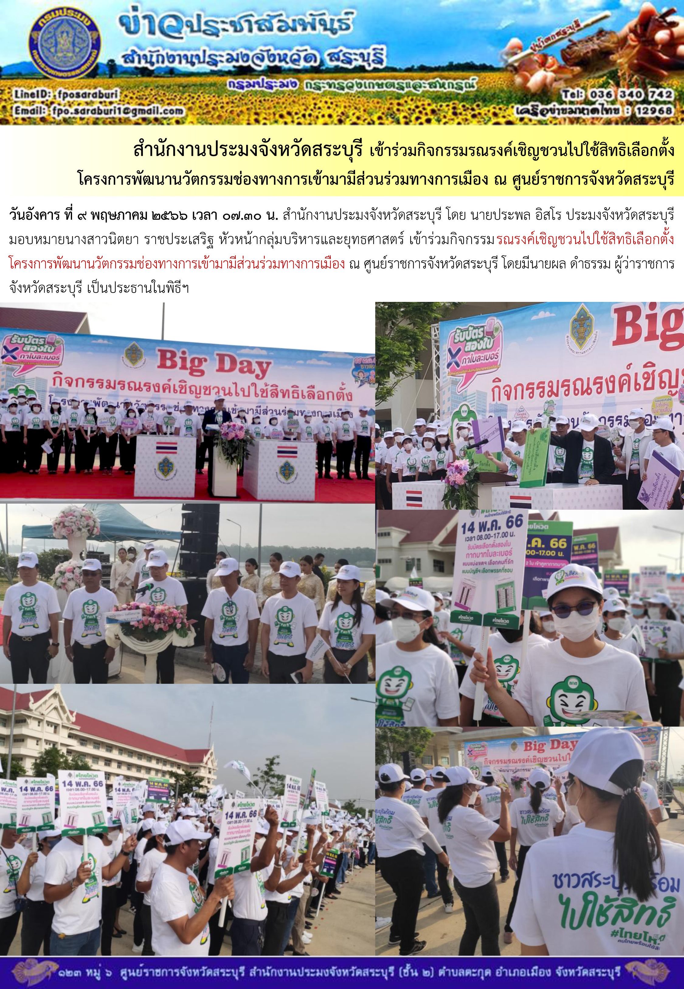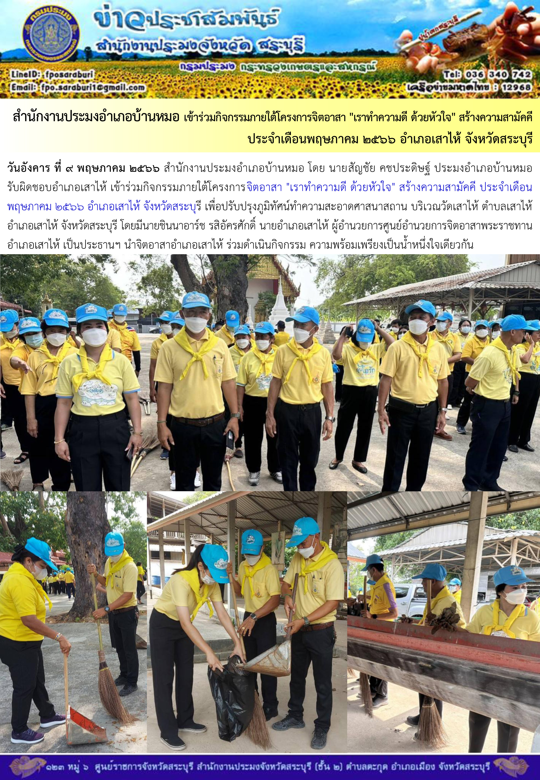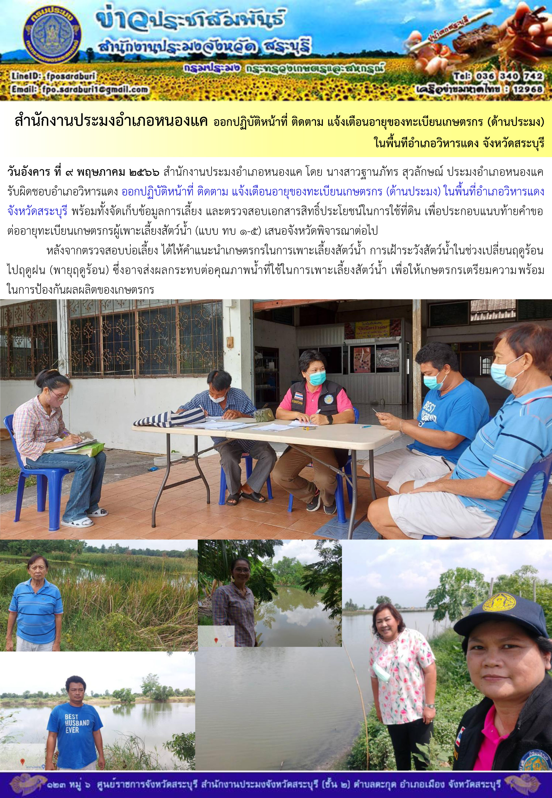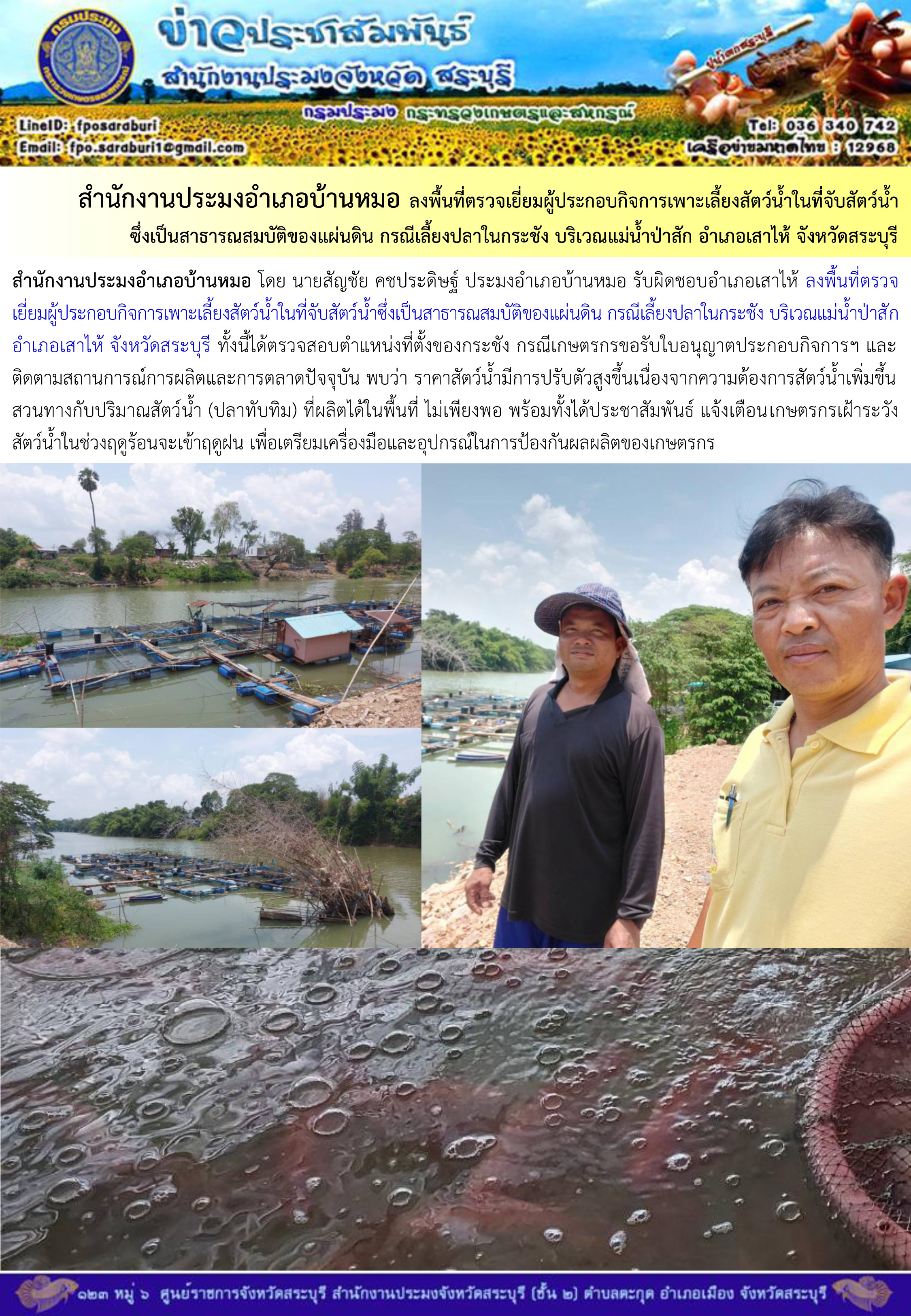 ภารกิจประจำวันที่ 9 พฤษภาคม 2566 สำนักงานประมงจังหวัดสระบุรี