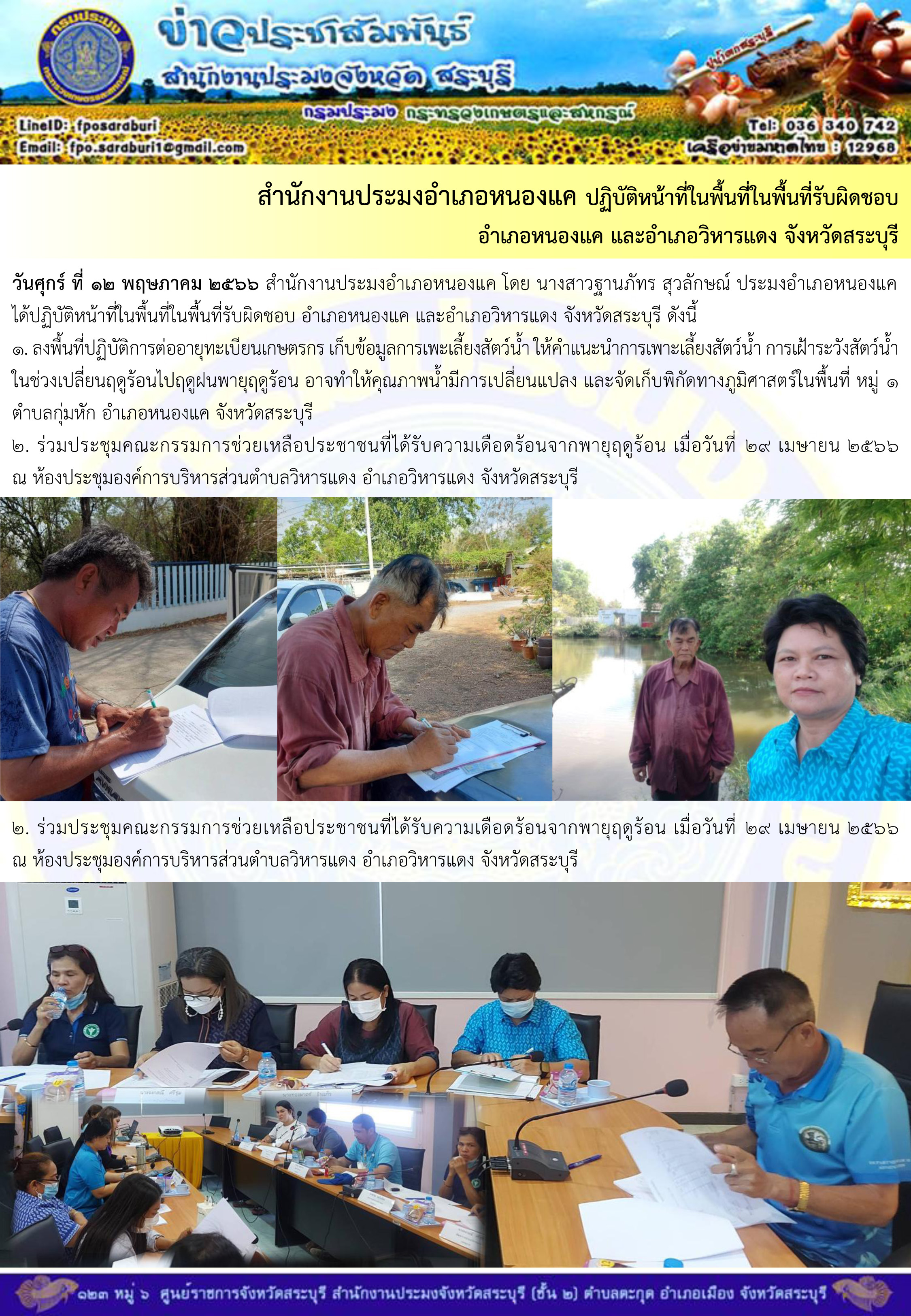ภารกิจประจำวันที่ 12 พฤษภาคม 2566 สำนักงานประมงจังหวัดสระบุรี