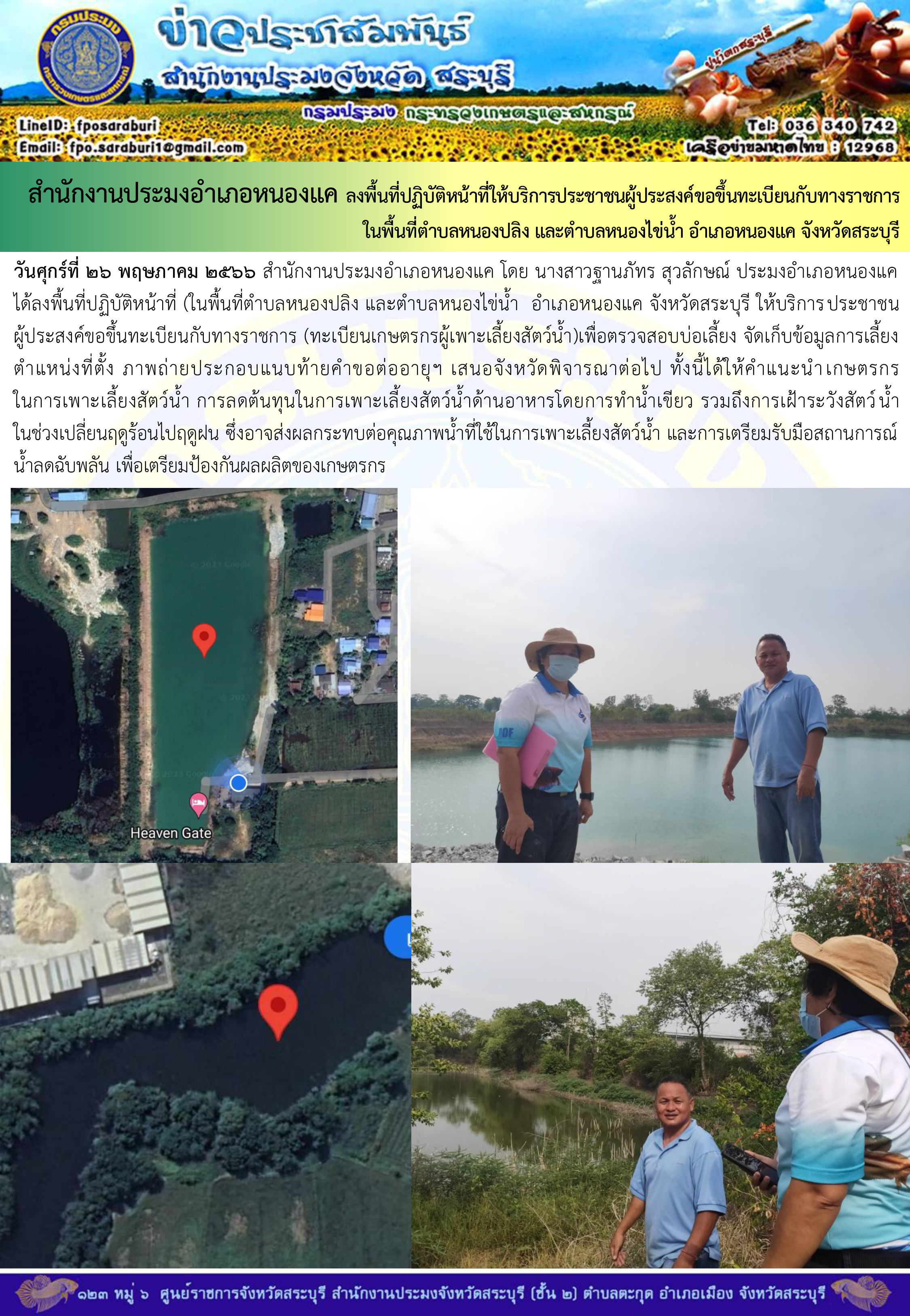 ภารกิจประจำวันที่ 26 พฤษภาคม 2566 สำนักงานประมงจังหวัดสระบุรี