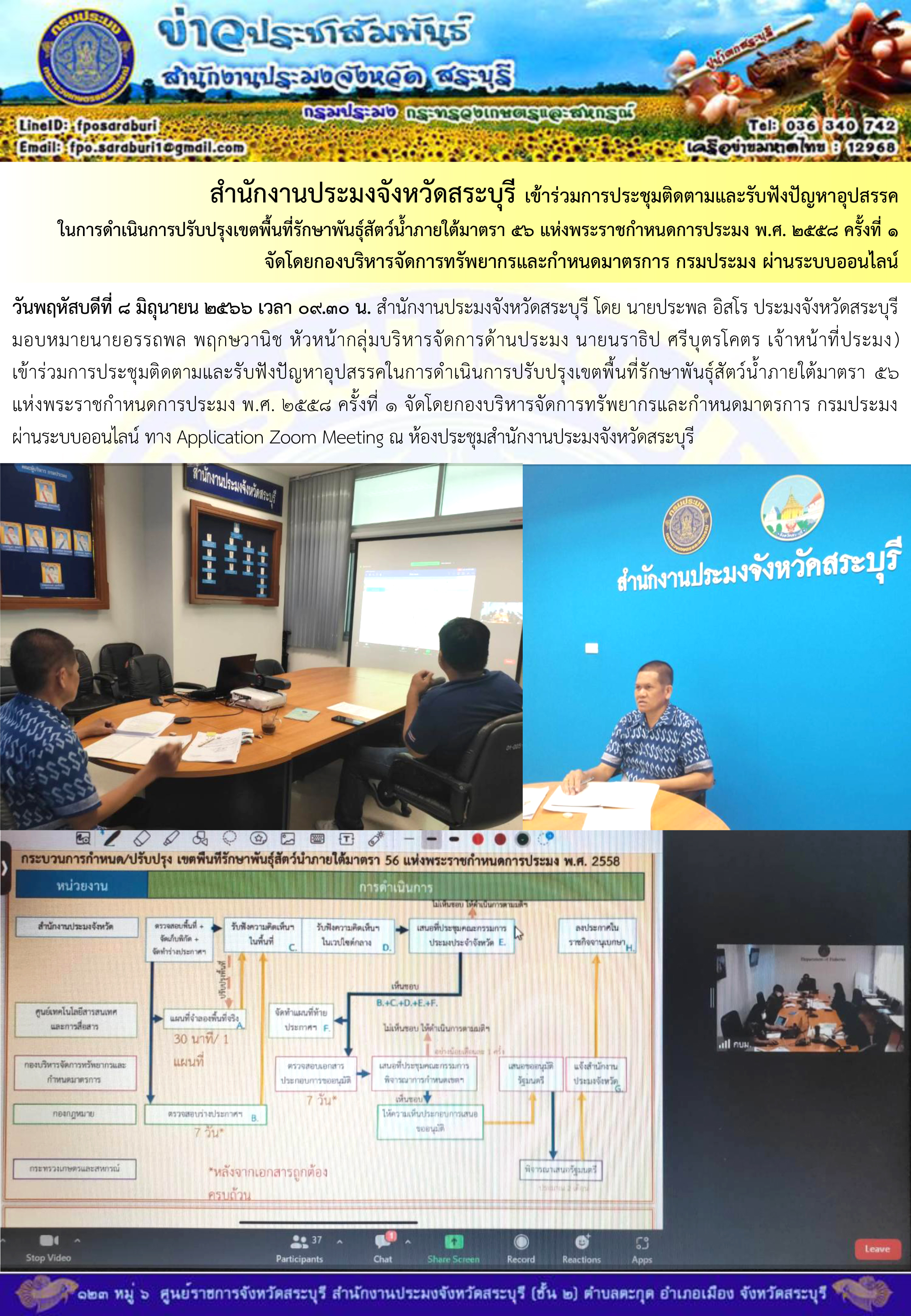 ภารกิจประจำวันที่ 8 มิถุนายน 2566 สำนักงานประมงจังหวัดสระบุรี