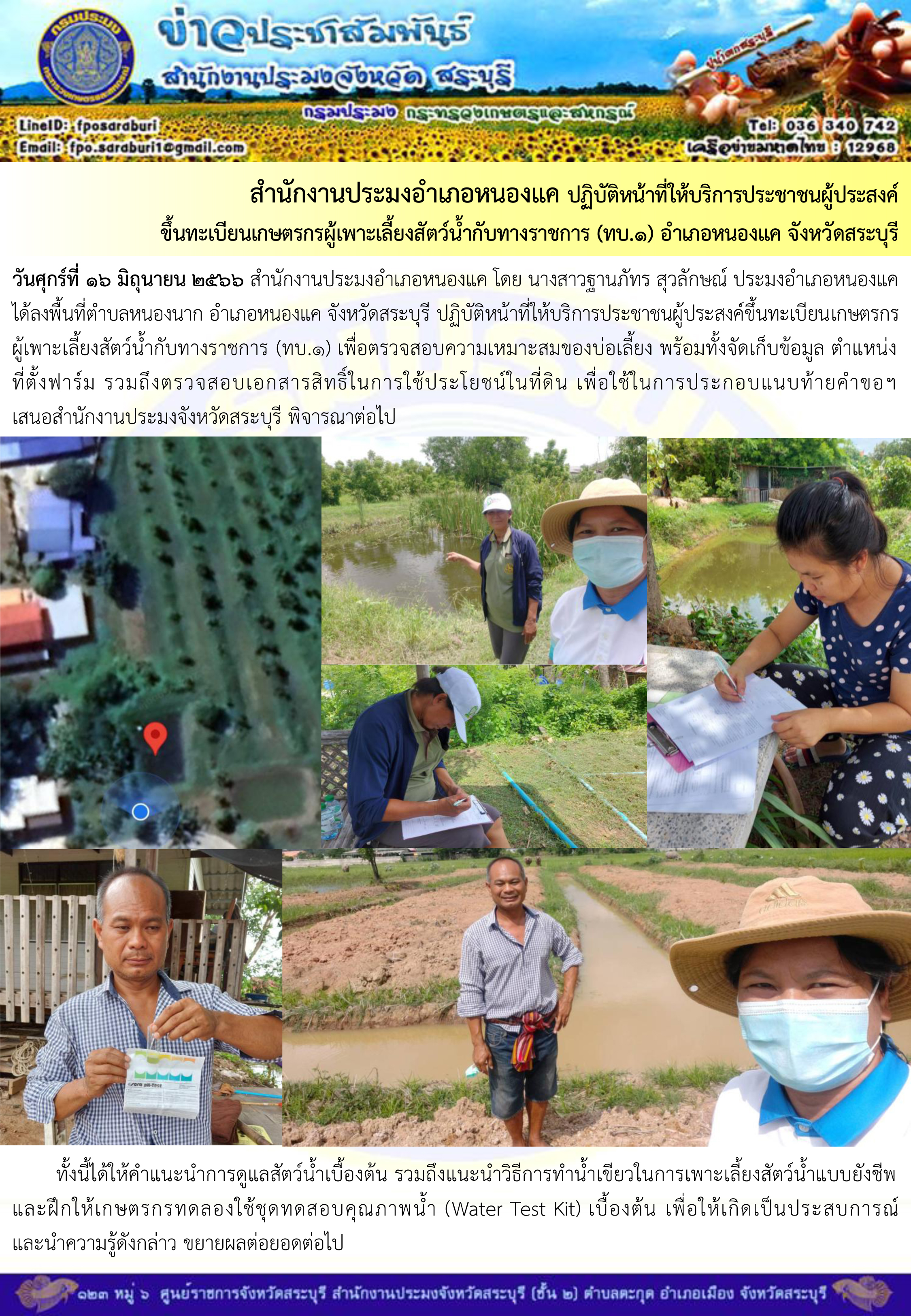 ภารกิจประจำวันที่ 16 มิถุนายน 2566 สำนักงานประมงจังหวัดสระบุรี