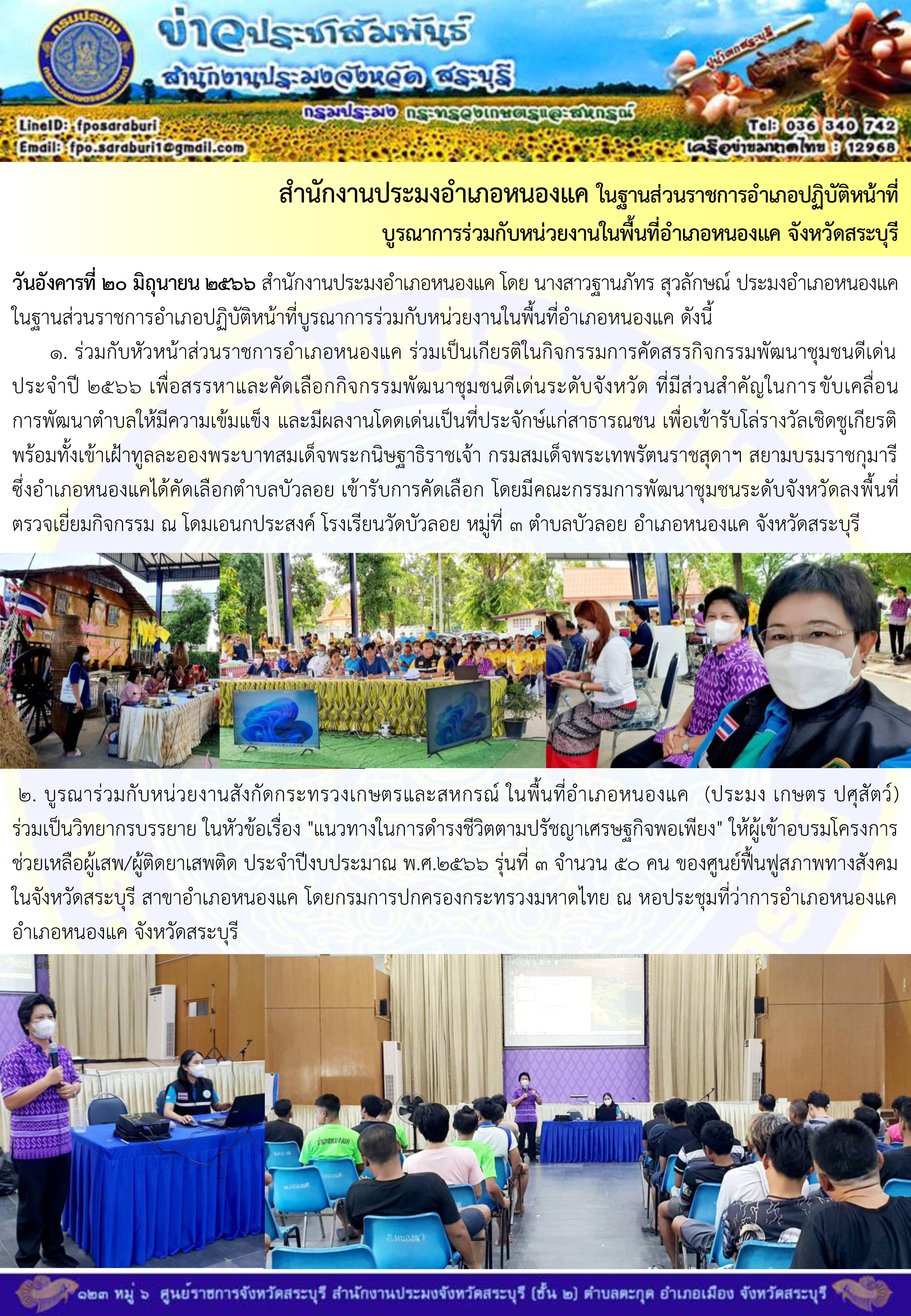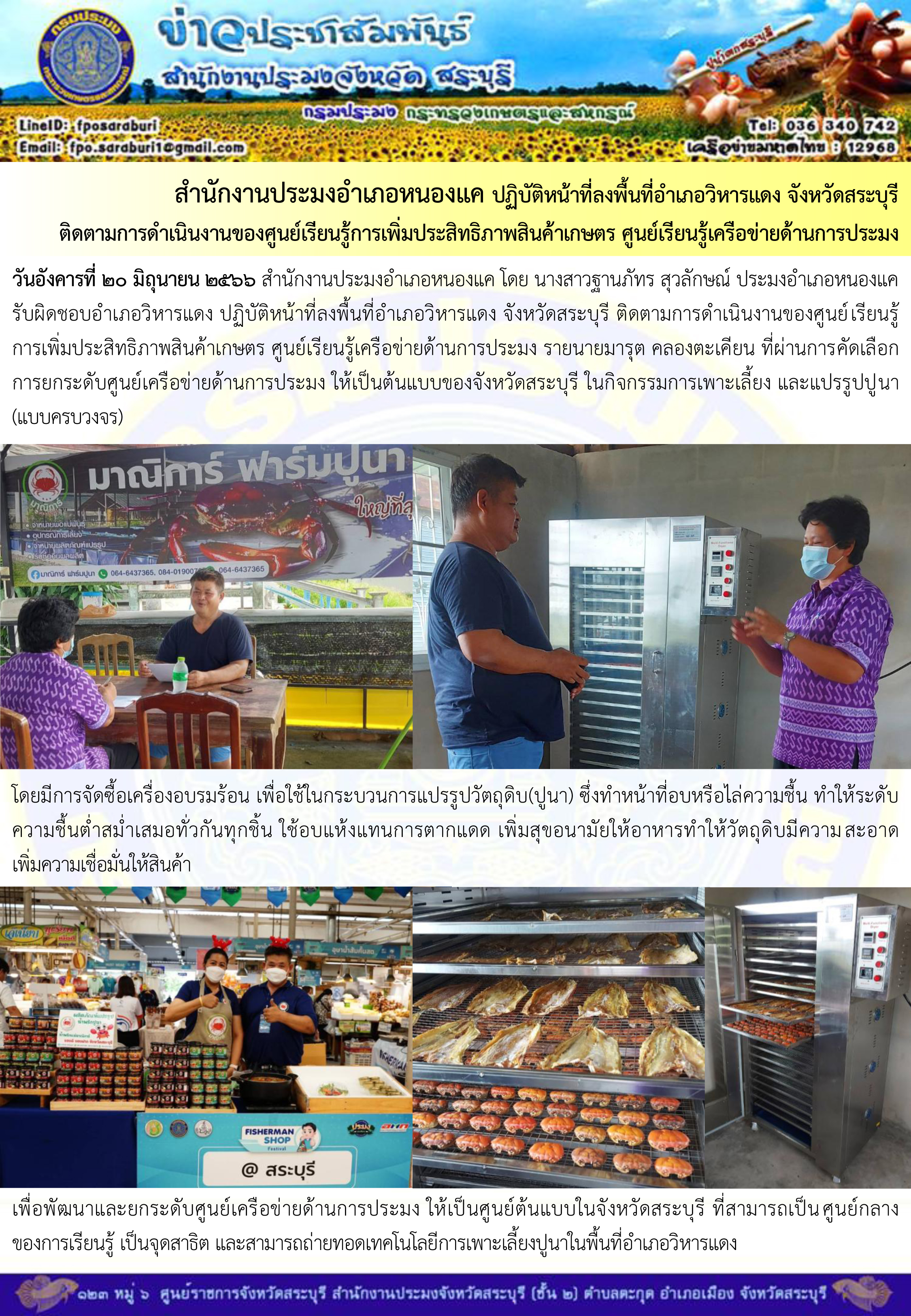 ภารกิจประจำวันที่ 20 มิถุนายน 2566 สำนักงานประมงจังหวัดสระบุรี..คลิก