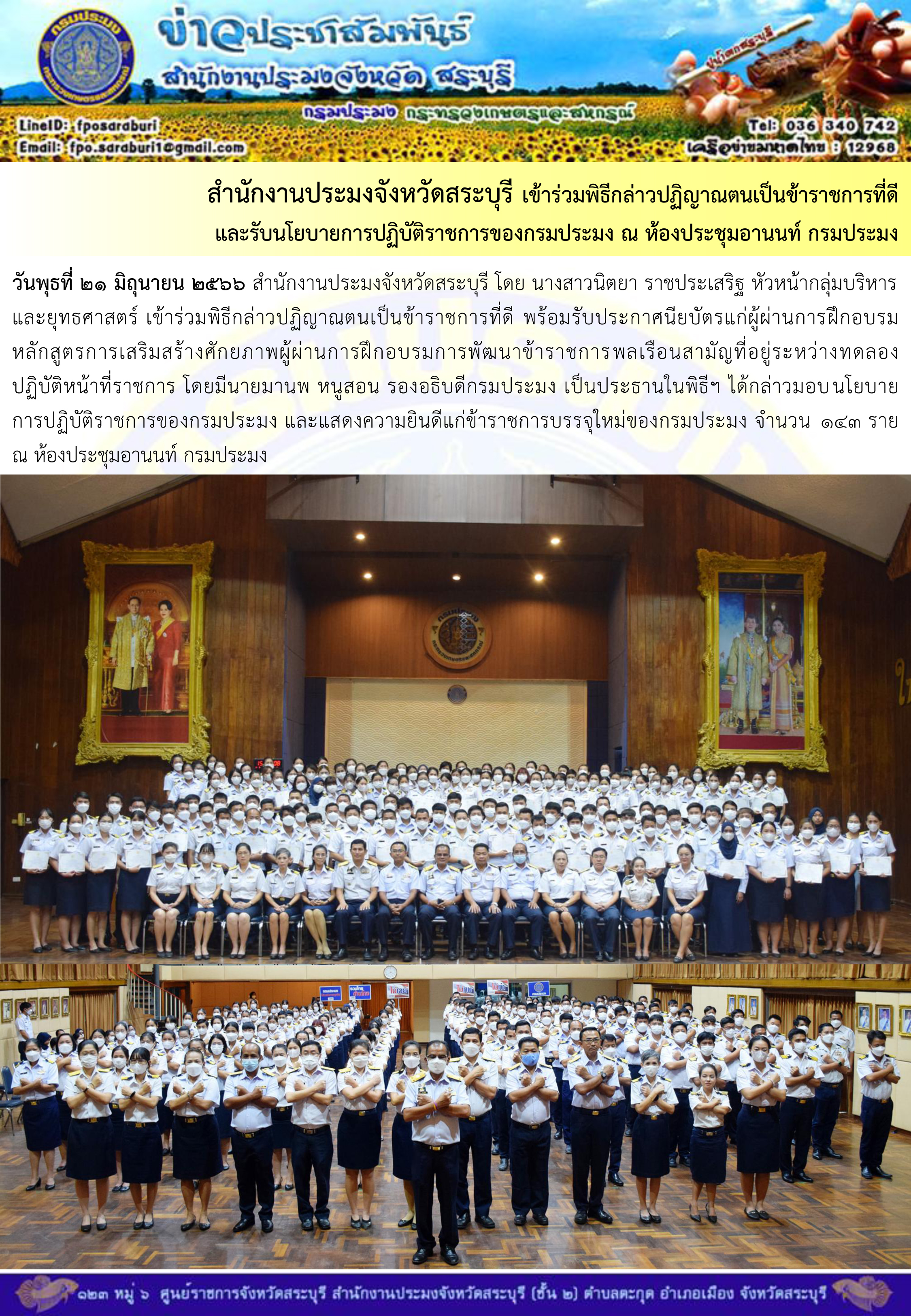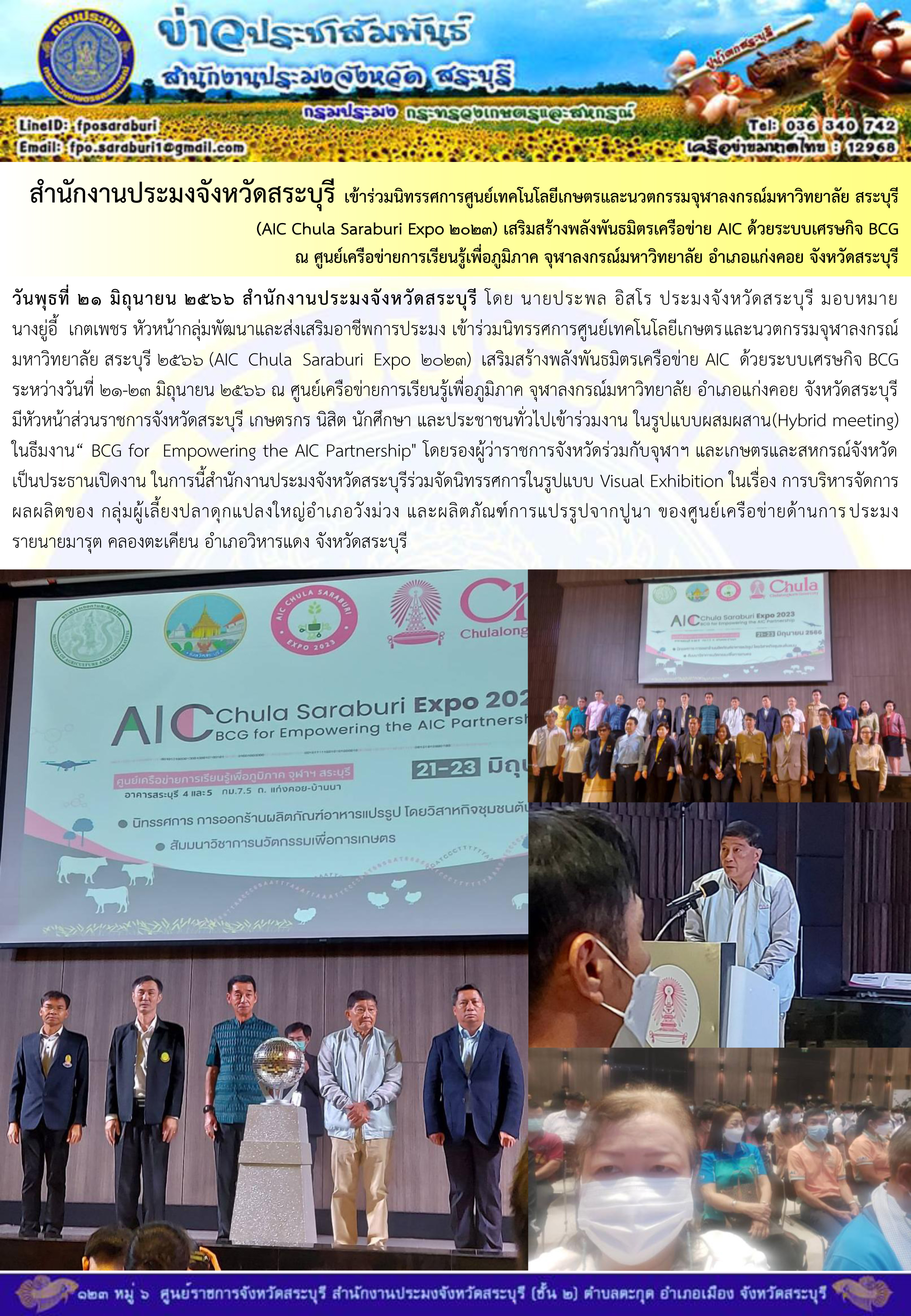 ภารกิจประจำวันที่ 21 มิถุนายน 2566 สำนักงานประมงจังหวัดสระบุรี..คลิก