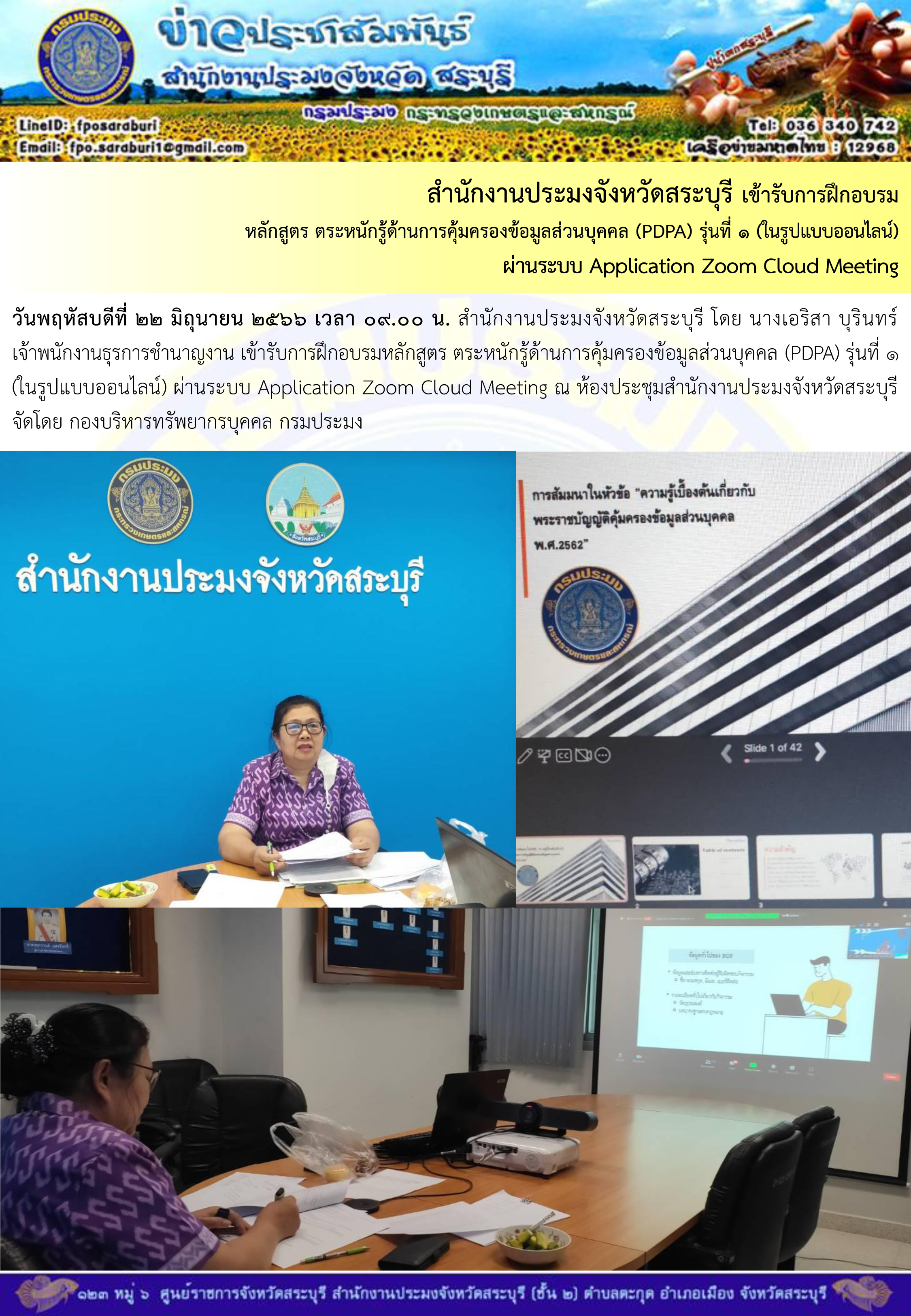 ภารกิจประจำวันที่ 22 มิถุนายน 2566 สำนักงานประมงจังหวัดสระบุรี