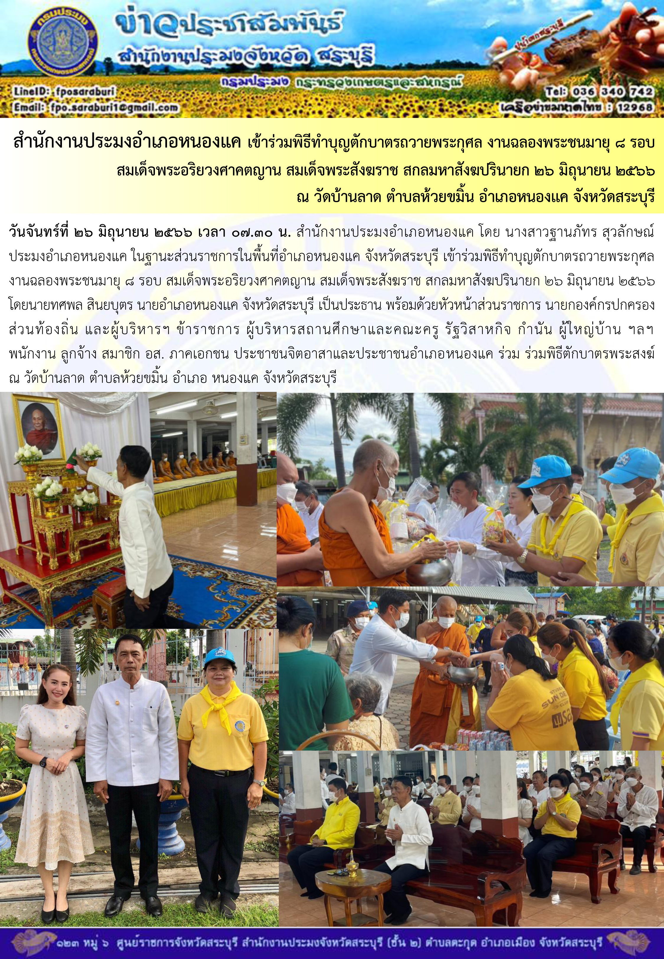 ภารกิจประจำวันที่ 26 มิถุนายน 2566 สำนักงานประมงจังหวัดสระบุรี..คลิก
