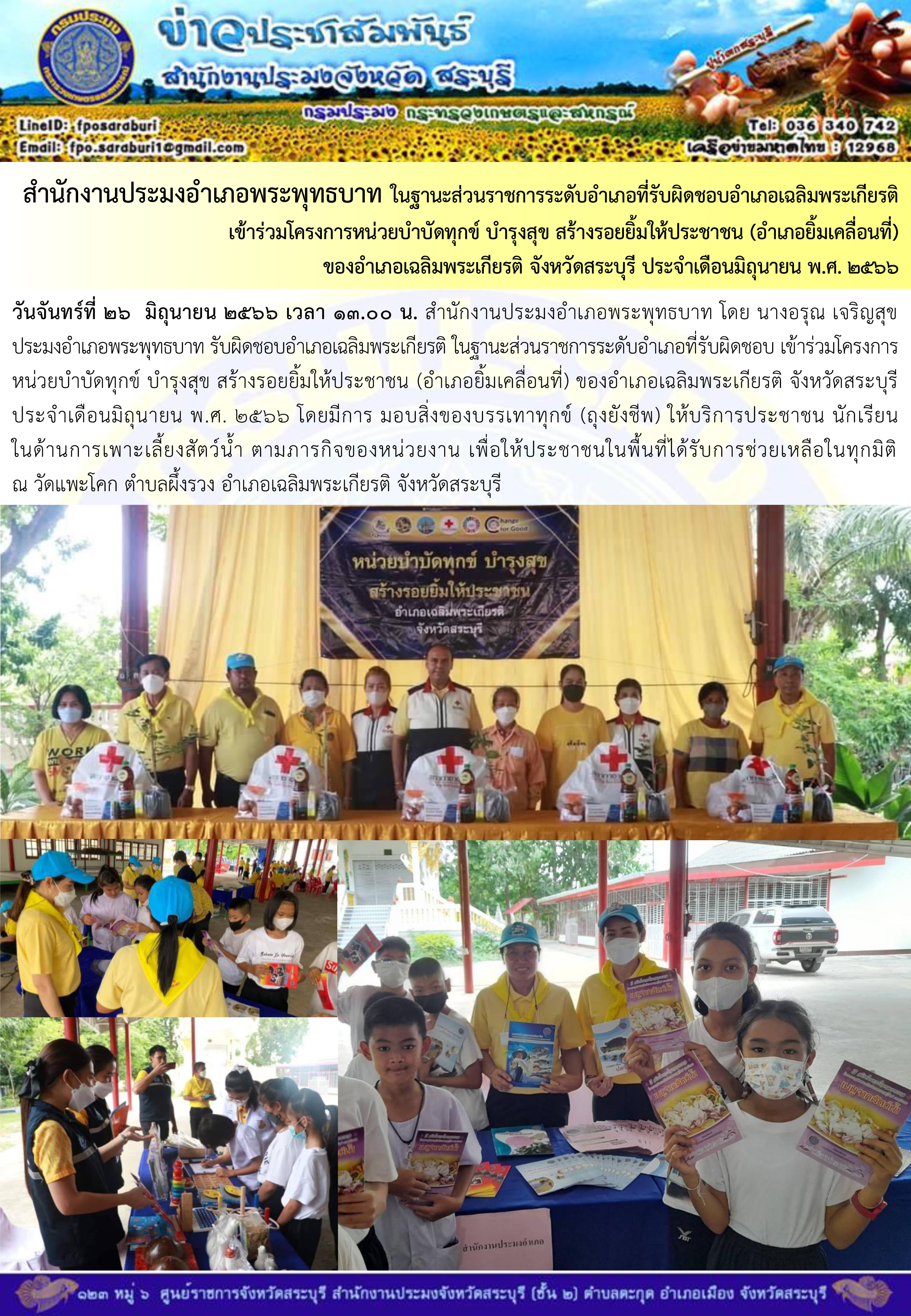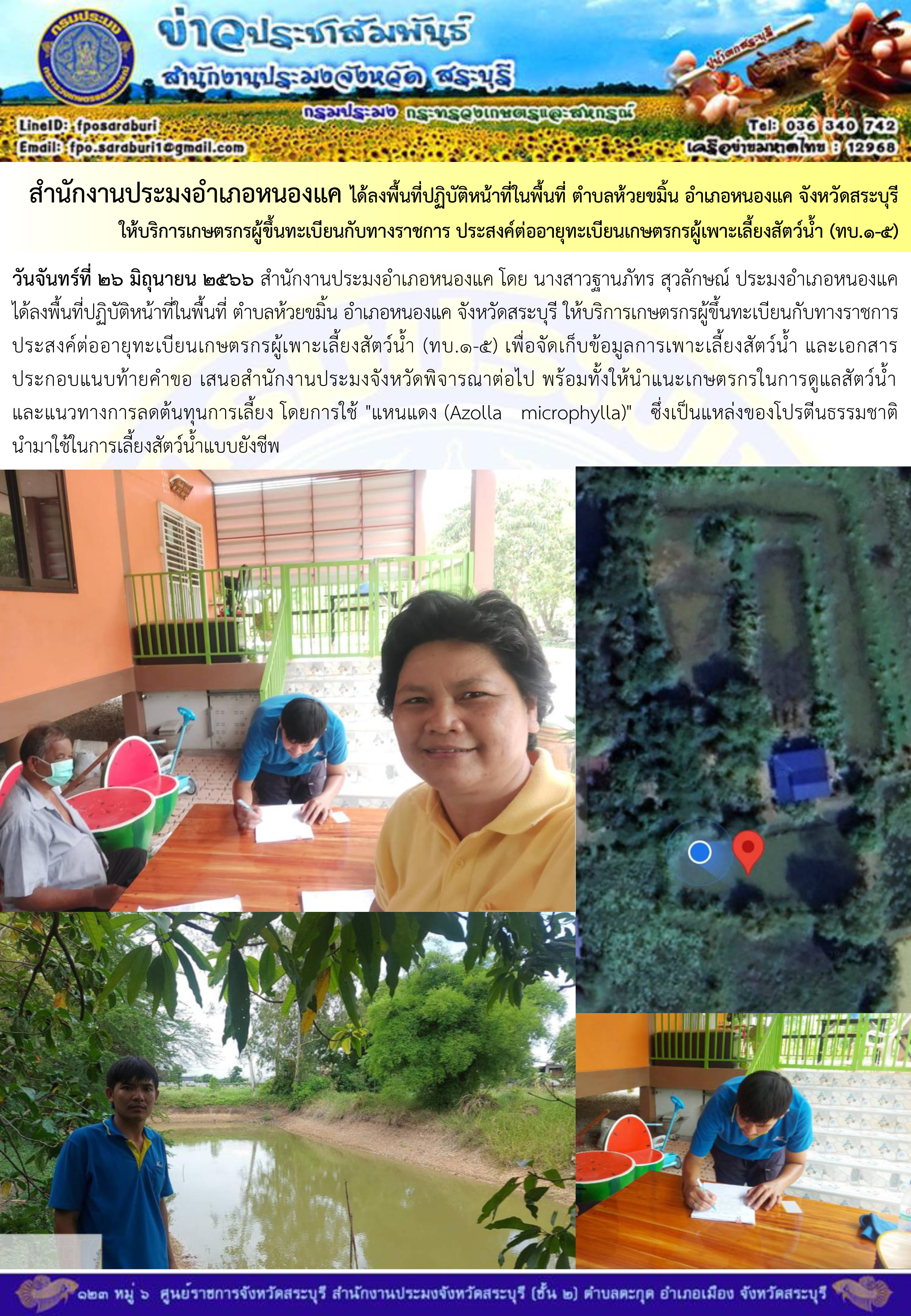 ภารกิจประจำวันที่ 26 มิถุนายน 2566 สำนักงานประมงจังหวัดสระบุรี