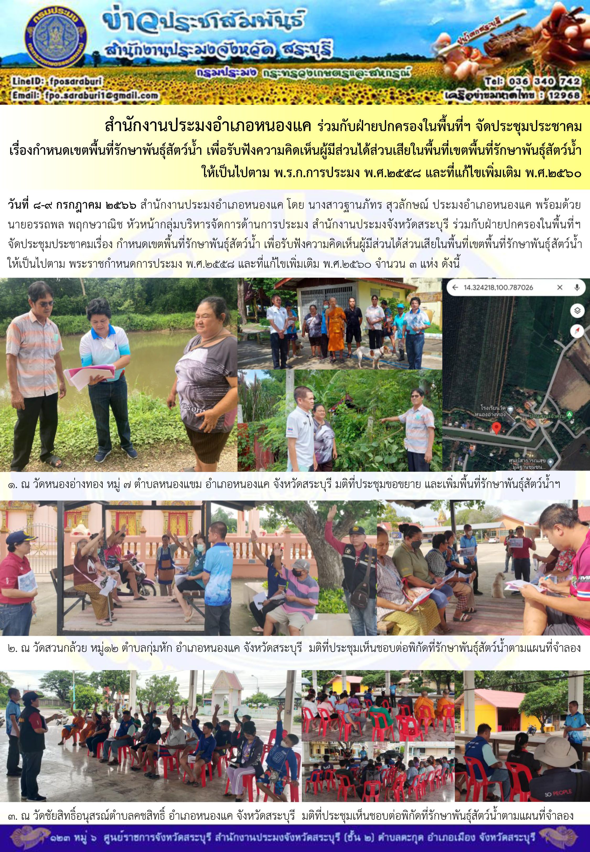 ภารกิจประจำวันที่ 8 กรกฎาคม 2566 สำนักงานประมงจังหวัดสระบุรี