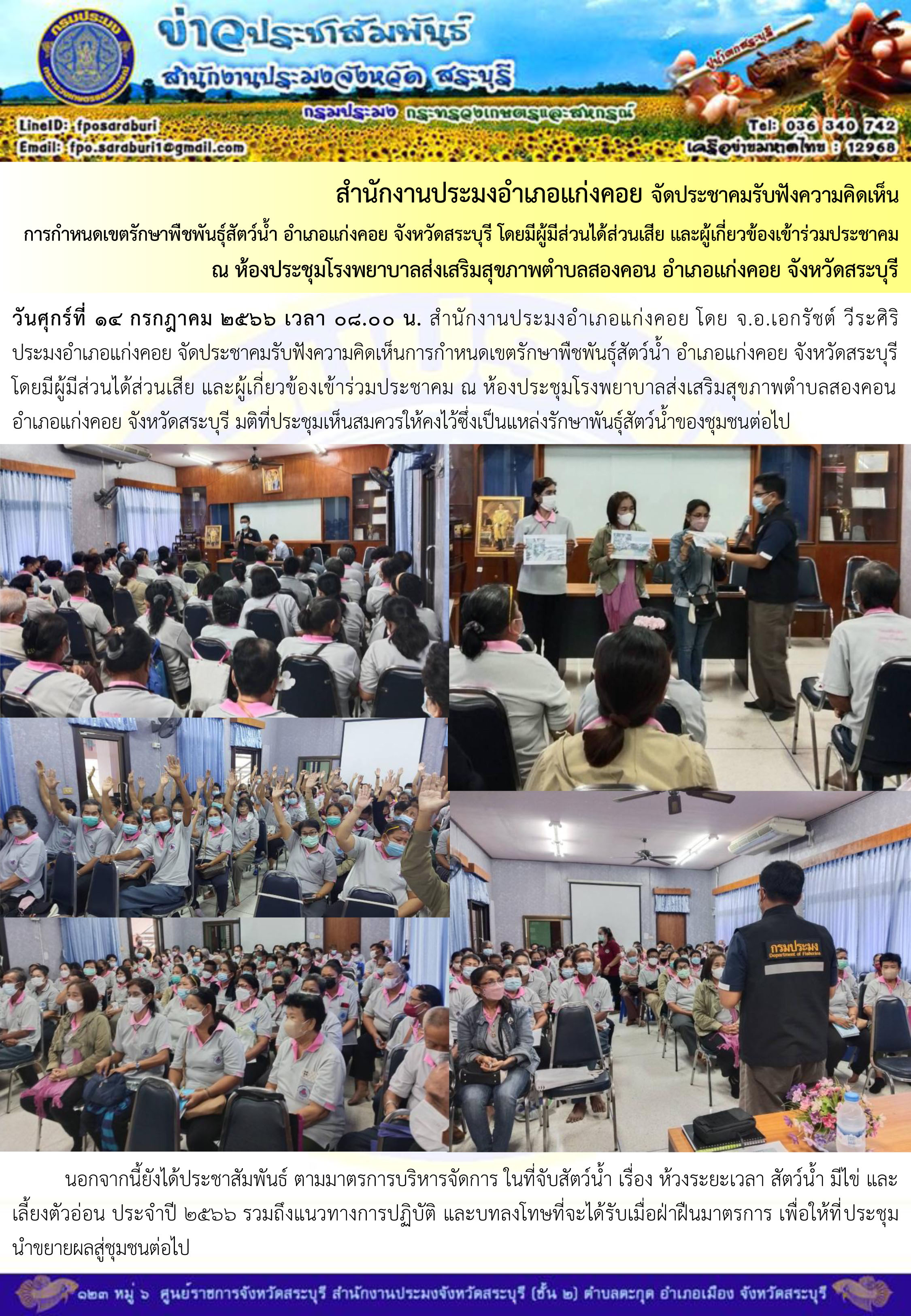 ภารกิจประจำวันที่ 14 กรกฎาคม 2566 สำนักงานประมงจังหวัดสระบุรี