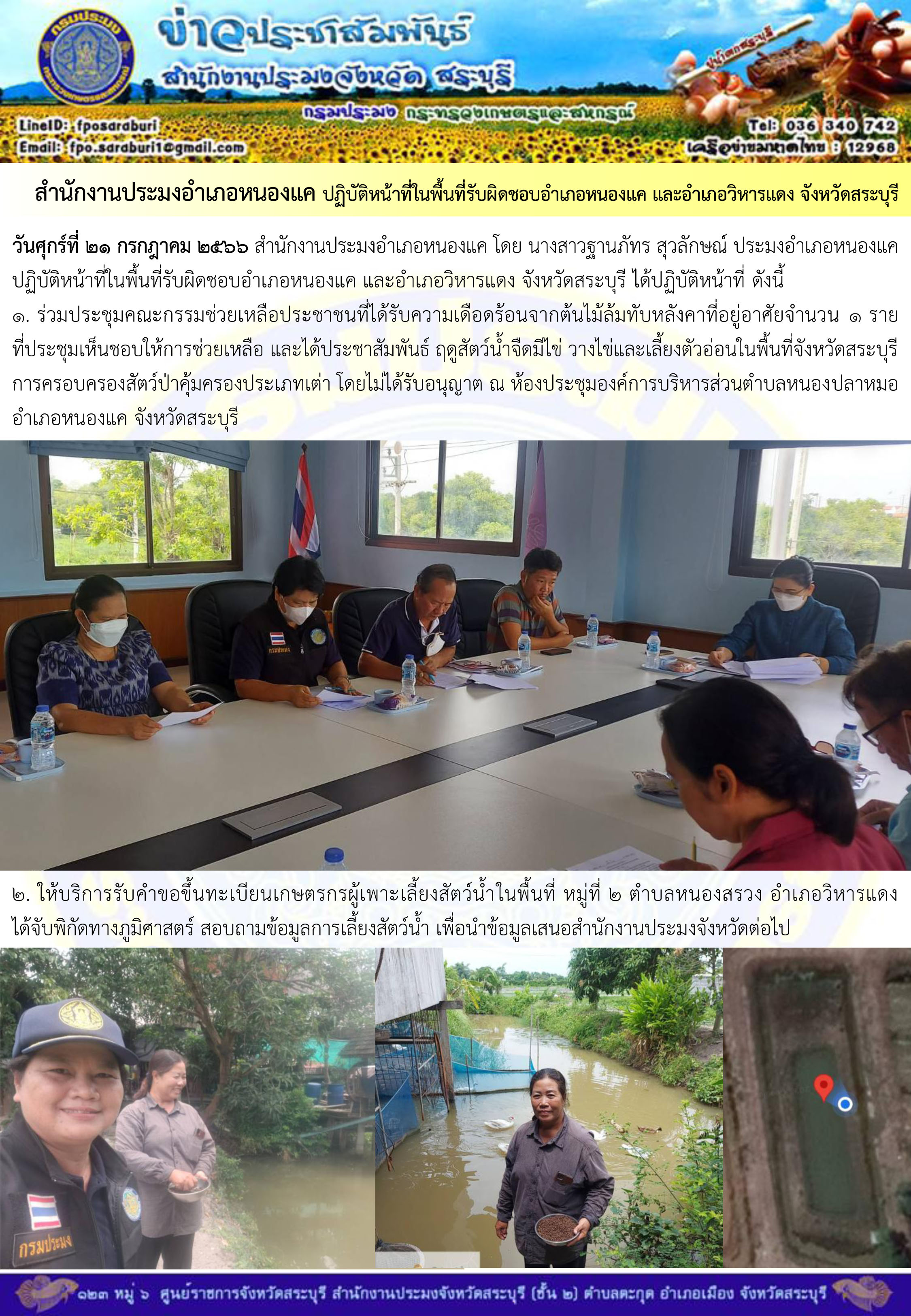 ภารกิจประจำวันที่ 21 กรกฎาคม 2566 สำนักงานประมงจังหวัดสระบุรี