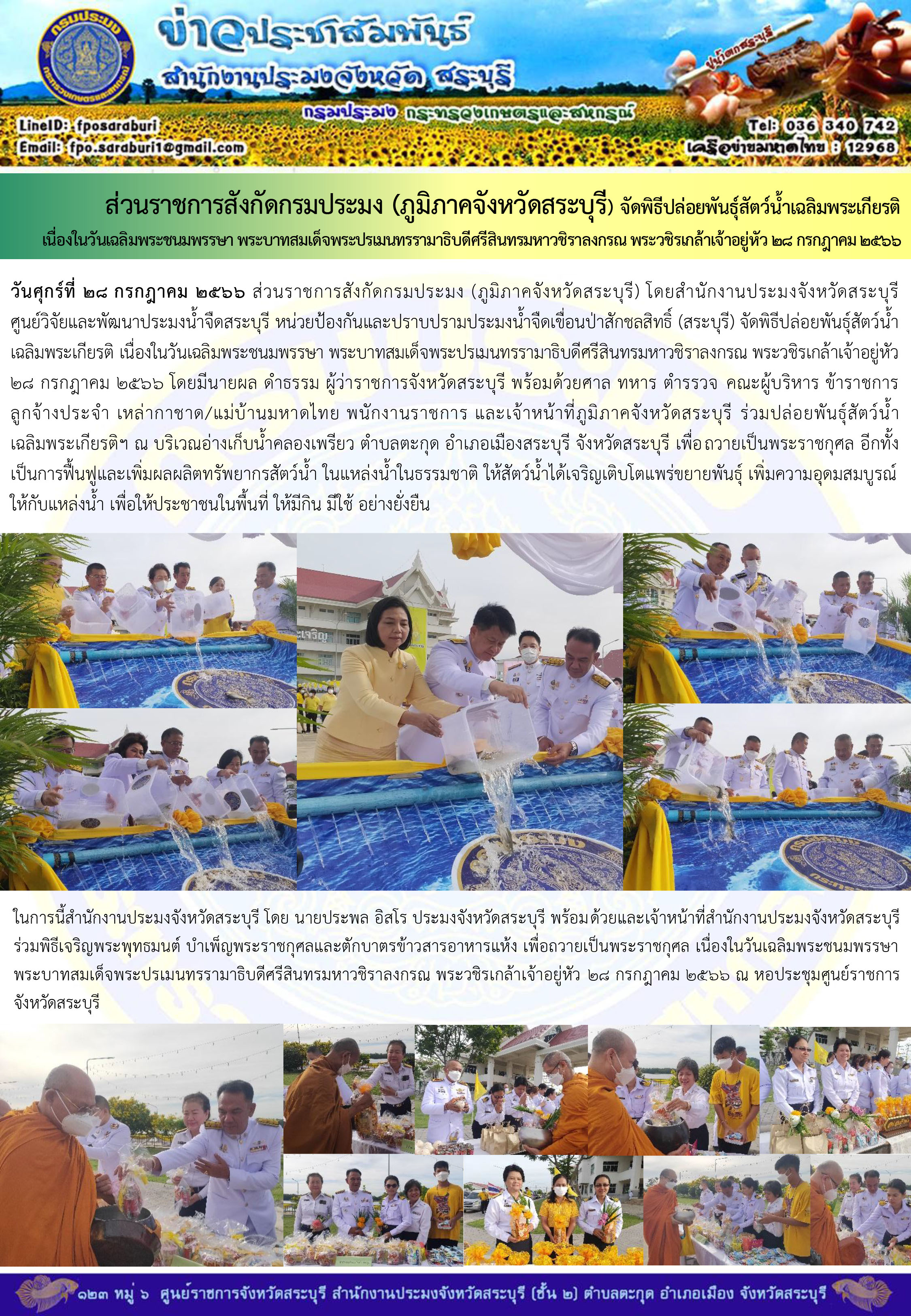 ภารกิจประจำวันที่ 28 กรกฎาคม 2566 สำนักงานประมงจังหวัดสระบุรี