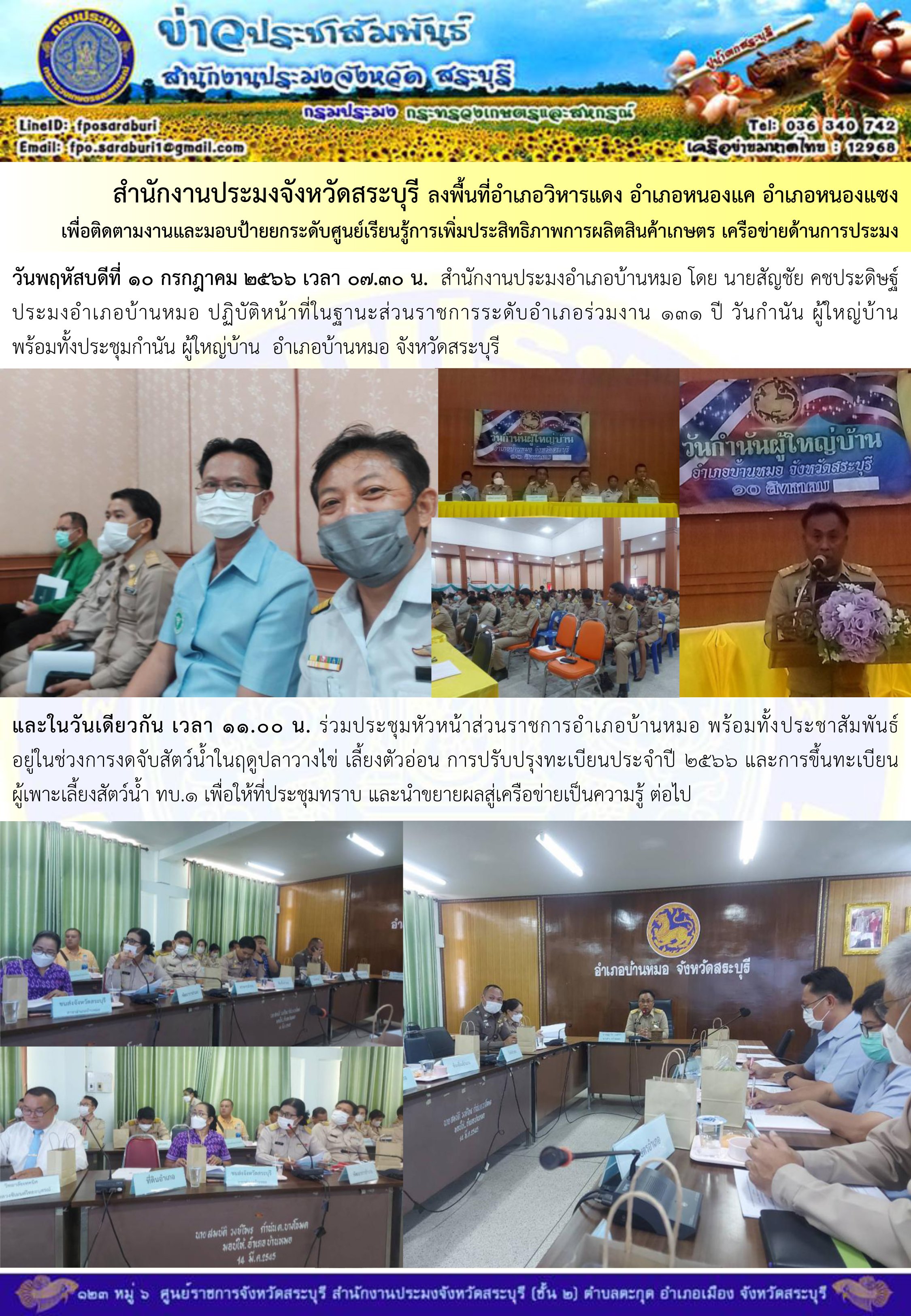 ภารกิจประจำวันที่ 10 สิงหาคม 2566 สำนักงานประมงจังหวัดสระบุรี