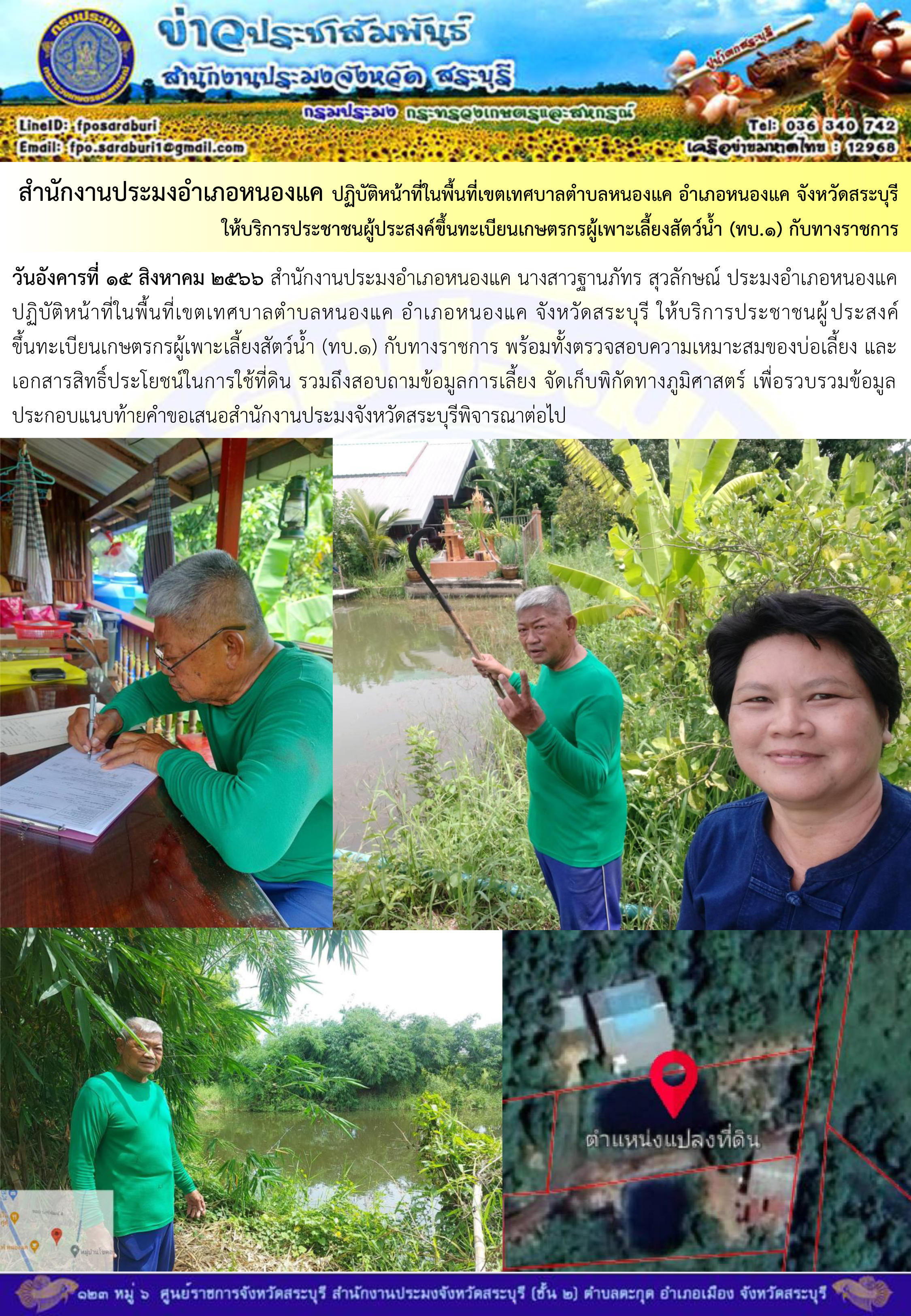ภารกิจประจำวันที่ 15 สิงหาคม 2566 สำนักงานประมงจังหวัดสระบุรี