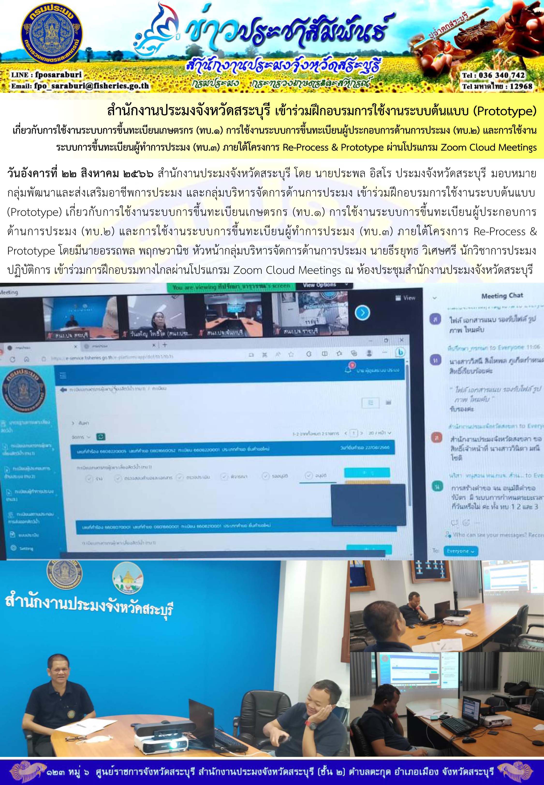ภารกิจประจำวันที่ 22 สิงหาคม 2566 สำนักงานประมงจังหวัดสระบุรี
