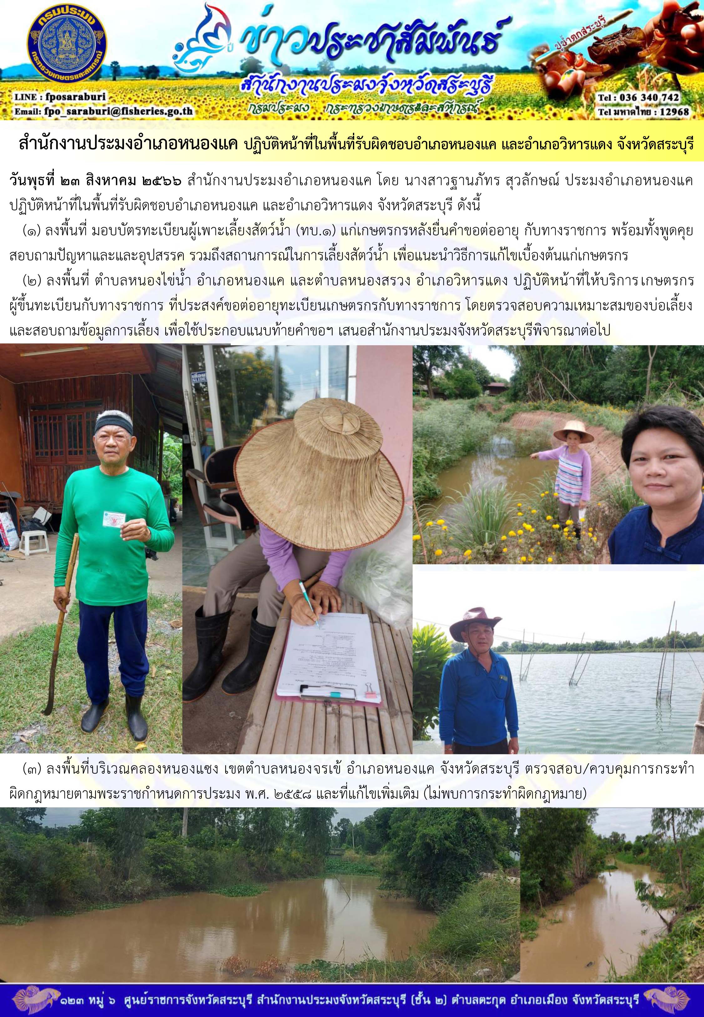 ภารกิจประจำวันที่ 23 สิงหาคม 2566 สำนักงานประมงจังหวัดสระบุรี
