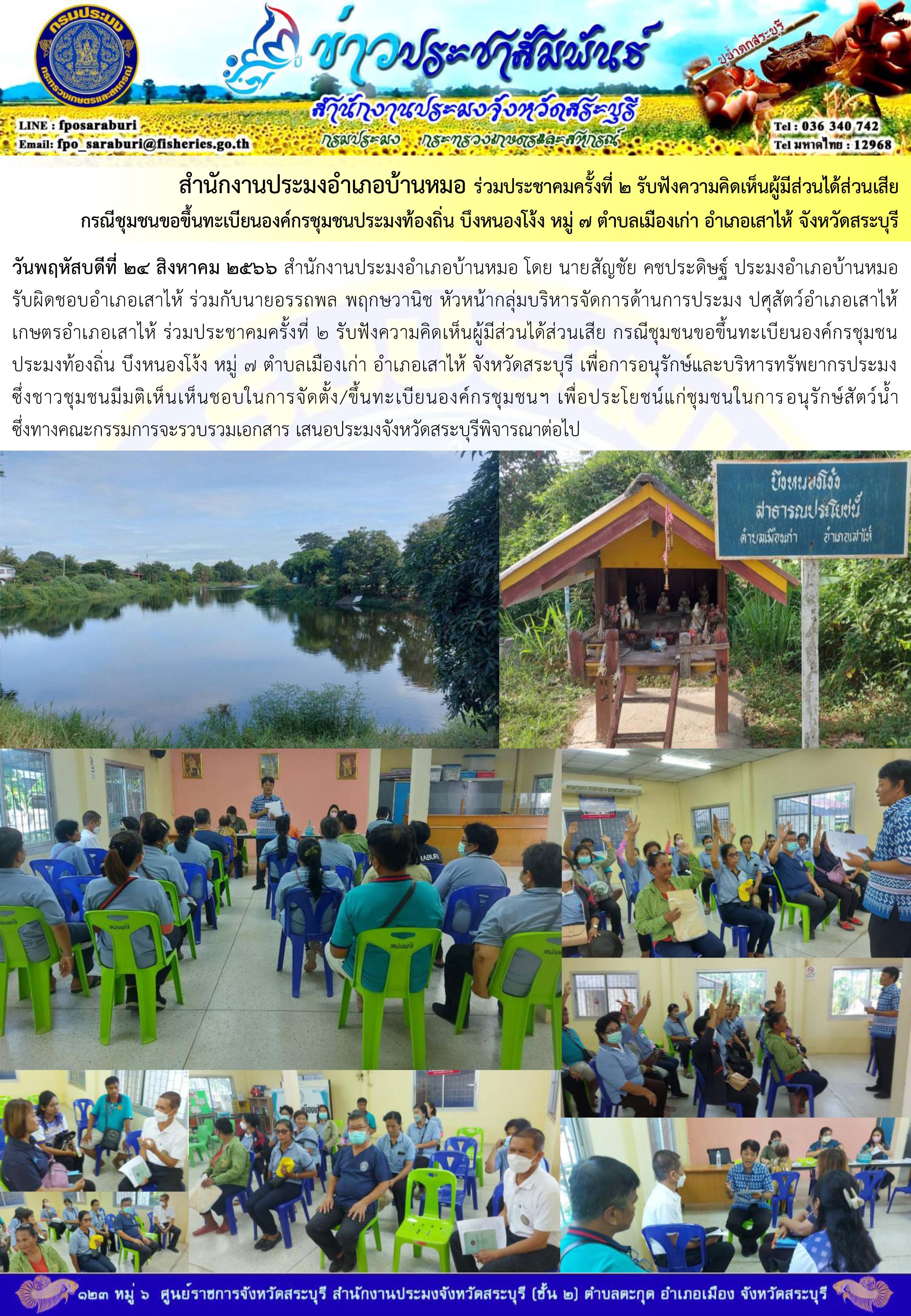 ภารกิจประจำวันที่ 24 สิงหาคม 2566 สำนักงานประมงจังหวัดสระบุรี