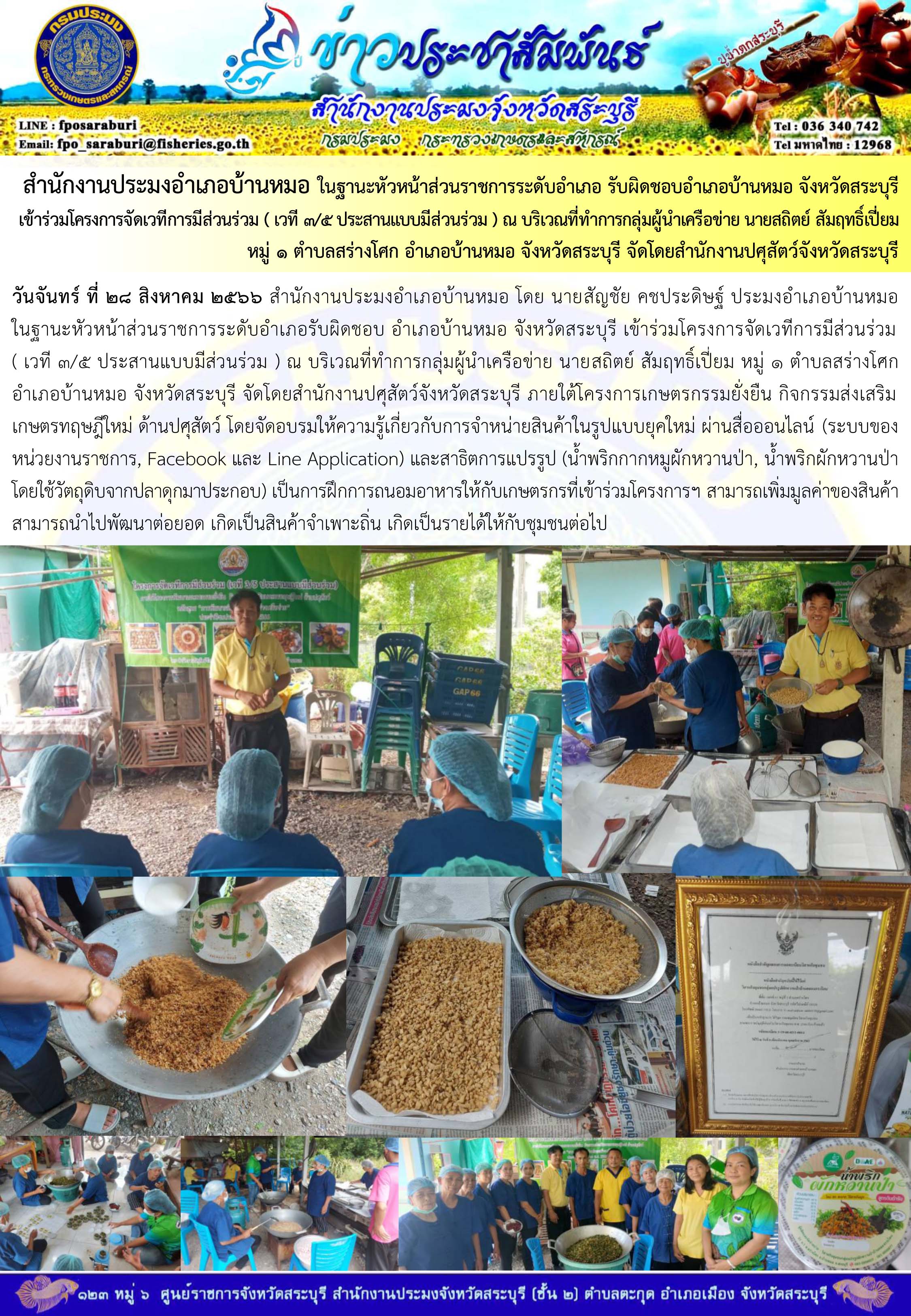 ภารกิจประจำวันที่ 28 สิงหาคม 2566 สำนักงานประมงจังหวัดสระบุรี