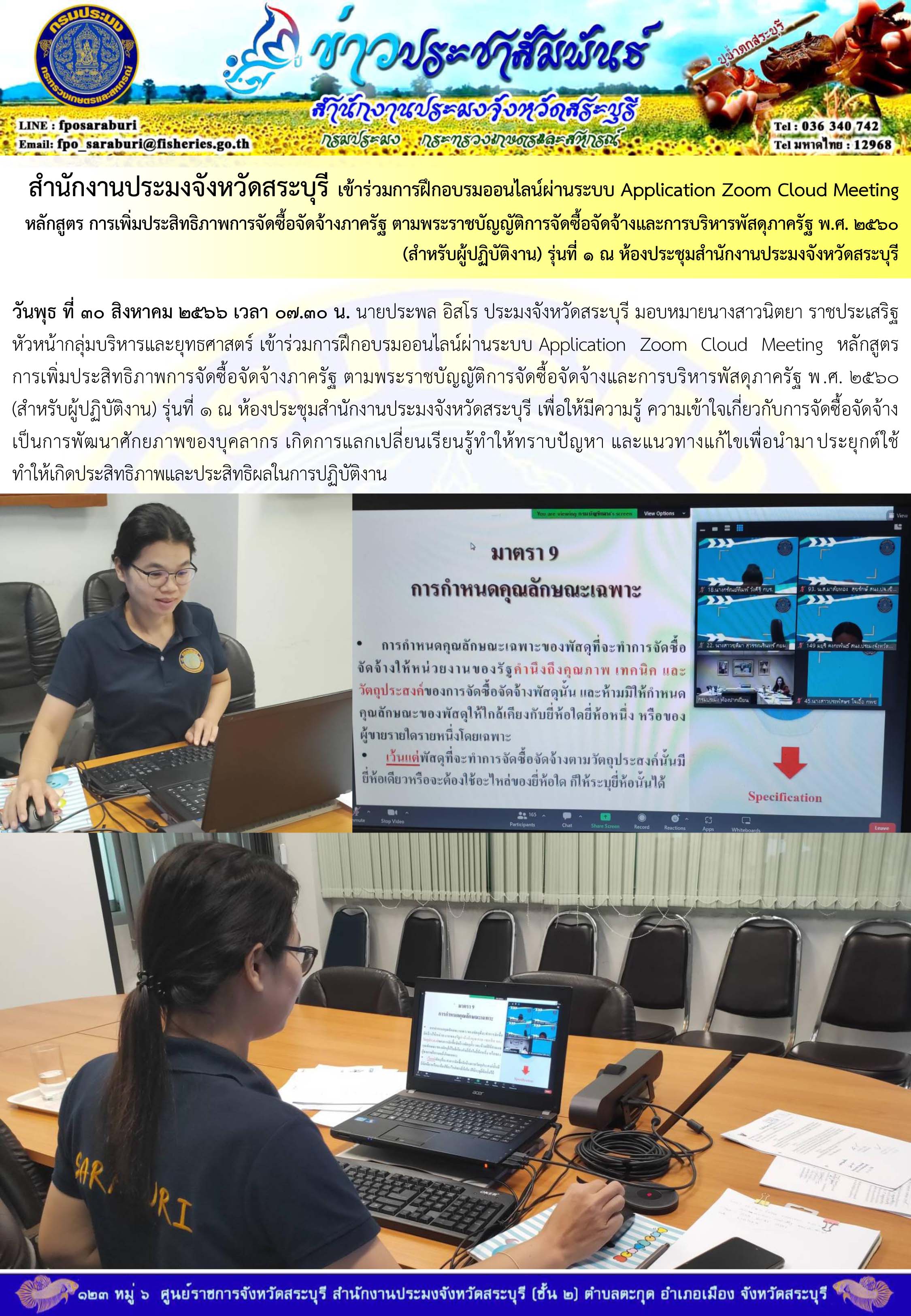 ภารกิจประจำวันที่ 30 สิงหาคม 2566 สำนักงานประมงจังหวัดสระบุรี