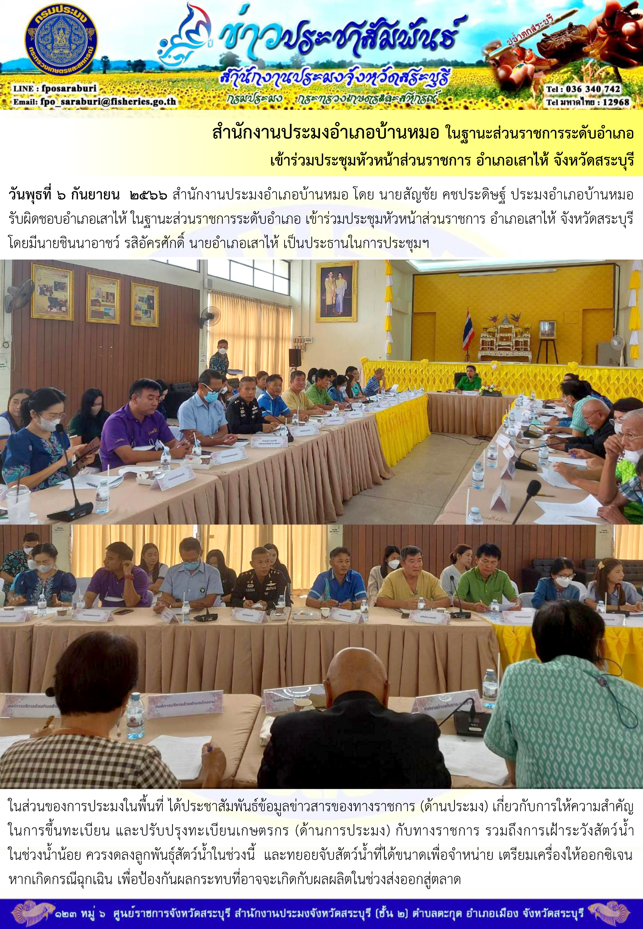 ภารกิจประจำวันที่ 6 กันยายน 2566 สำนักงานประมงจังหวัดสระบุรี..คลิก